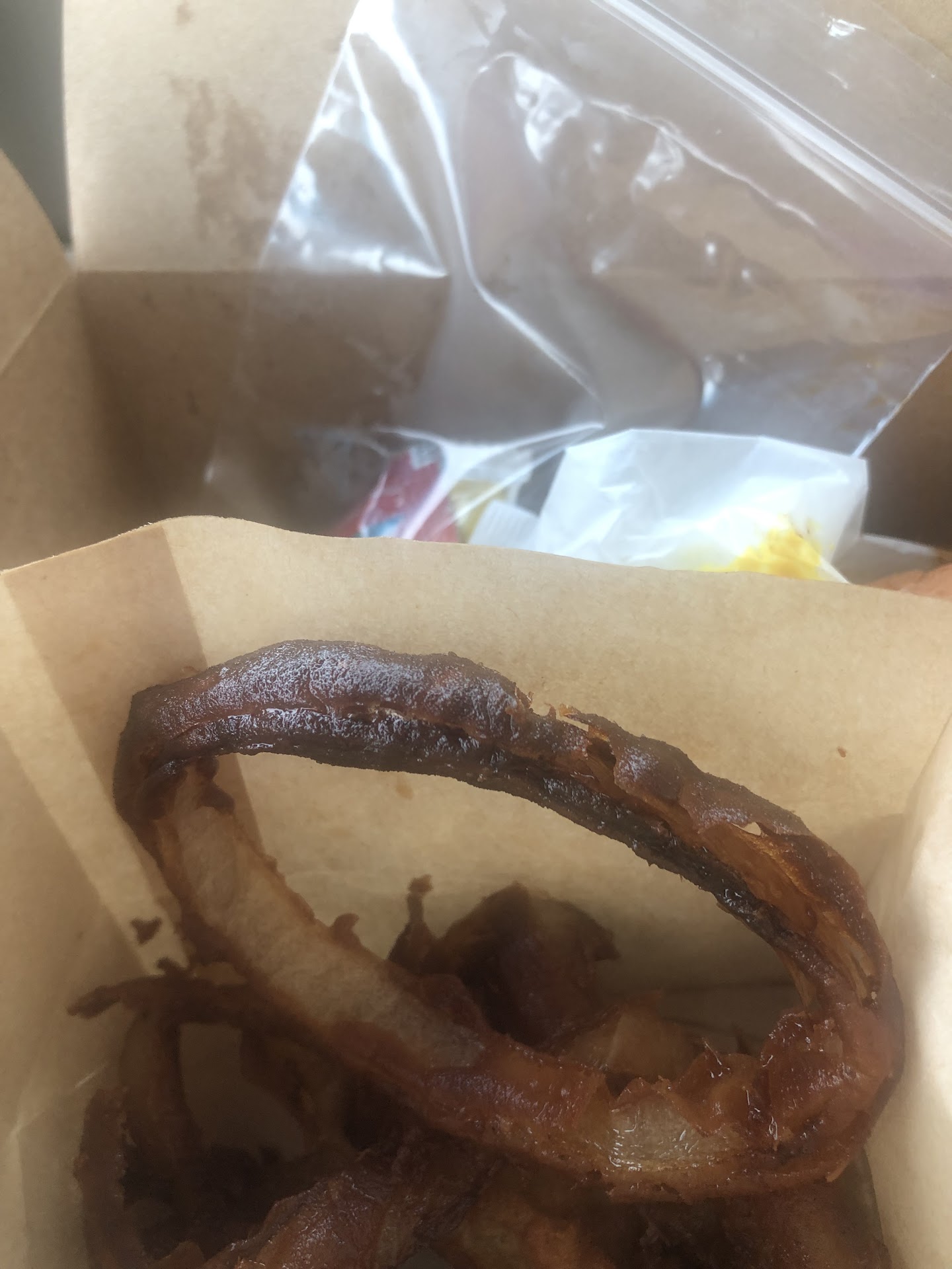 Came here for the first time on a Thursday afternoon and I was not impressed. My biggest complaint is the prices versus the portion of food that you receive. Many of the meals are $13+ with some being upwards of $15. We ordered the number one (two chili cheese dogs) and the number two (one chili cheese dog and one burger) and our total came out to about $28 after tax. I was fine with that price until the food came out. The first thing i noticed after opening the box was how small the hamburger and hotdog were. This is not sarcasm or exaggeration: the hamburger was smaller than a double cheeseburger from McDonalds and the hotdog was much smaller than a hot dog from a Racetrack or QT. All of those options from competitors are around $2-$2.50 each. My burger buns were either over toasted or stale (not sure which) but they were pretty crunchy. Overall, the flavor of the burger and hotdogs were not bad (which is the only reason I didn't give this a lower rating). The fries and onion rings we got were just okay.
