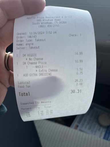 If you’re looking for an unforgettable dining experience in South Windham, CT, Apollo Pizza is the place to be. As someone with Greek heritage, I was thrilled by the warmth and hospitality that greeted me the moment I walked through the door. One of the servers noticed my background and excitedly shared this with the owner, who came out personally to say hello. Let me tell you, the owner was not only welcoming but radiated genuine kindness and pride in his restaurant—a true reflection of Greek hospitality at its finest!