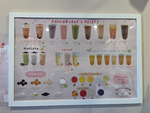 Read moreI came in with a friend for the first time and we were immediately greeted with friendliness and smiles. The staff were very patient as they waited for us to select drinks. We did not try any of the food, but the drinks were amazing. We only had to wait about five minutes or so. I ordered a brown sugar boba and it was so sweet! Especially after I stirred it around, and there was plenty of drink in the size large cup. The decorations were beautiful and pink, I can tell the place is well maintained. There's a nice open view to look out into the street, and some k-pop music is usually playing. I would definitely recommend coming here, they made my first boba experience a...