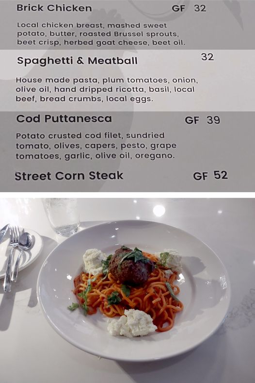 I ordered the $32 spaghetti & meatball dinner. You might expect to pay that much for spaghetti in a fancy Boston eatery, but it's kind of a shock in Maine. For that price, Gordan Ramsey himself should prepare it! Sadly, this was NOT the case. Maine is not known for pasta - something I mentioned to the server, but she said it was fantastic, so I decided to try it. It was not. The tiny portion was under done, the sauce was bland and the meatball (only 1 of them), which was locally sourced (Maine beef???), was over done and dry. The dish included 3 dollops of ricotta cheese, which I don't like, so I have nothing to say about that, except that the server didn't offer anything like freshly grated Parmigiano Reggiano, which one might expect for such a pricey plate of noodles. I ate maybe half of it before giving up on finding any semblance of flavor.