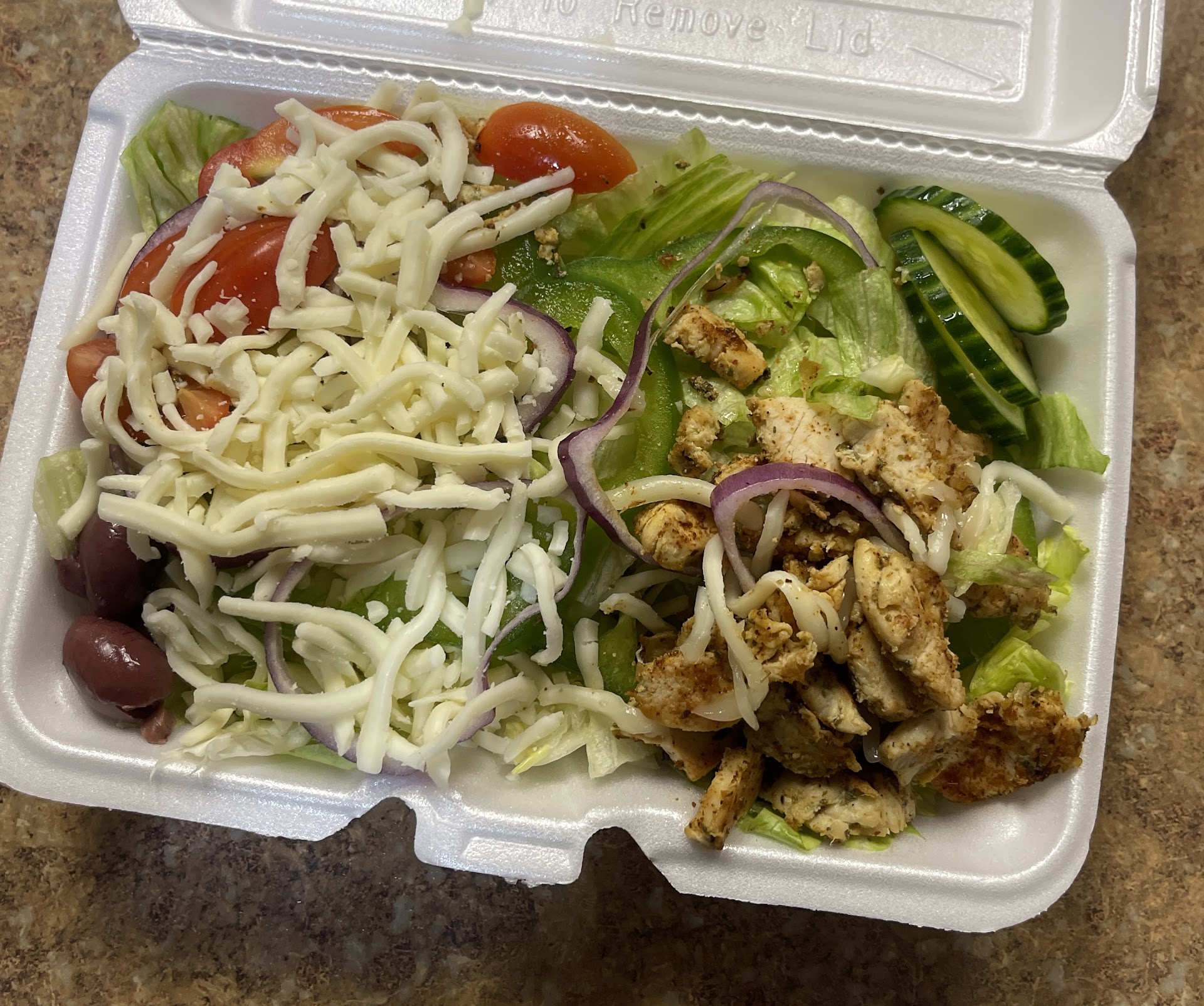 Read moreFirst time trying bradley pizza and very last! I ordered a cajun chicken salad. At first the mature lady behind counter that helped me out was very nice and pleasant. Once i went into my car and opened the salad i couldn't believe the small portion of chicken they gave me so i returned back to restaurant and they informed me that they weigh their chicken and i would have to pay extra for more. Portion was so small that they even accused me of eating some of the chicken before returning salad. Mind you the cost of salad was 13$. I tried to speak and find a solution but that's when her demeanor and attitude changed! She then called a male guy that came from the back and right away he became very argumentative and hostile telling me every pizza place gives the same amount of chicken. I told him he was wrong, walked away and threw salad in garbage and left because they were being hostile and trying to argue. I told them i would be leaving bad review and they said they don't care. If you're looking for small portions of chicken in your salad then this is an excellent place to order from. Update** Second picture is a grill chicken greek salad i bought the next day from Chris pizza brainard rd Hartford CT! See the difference and it's the same price!