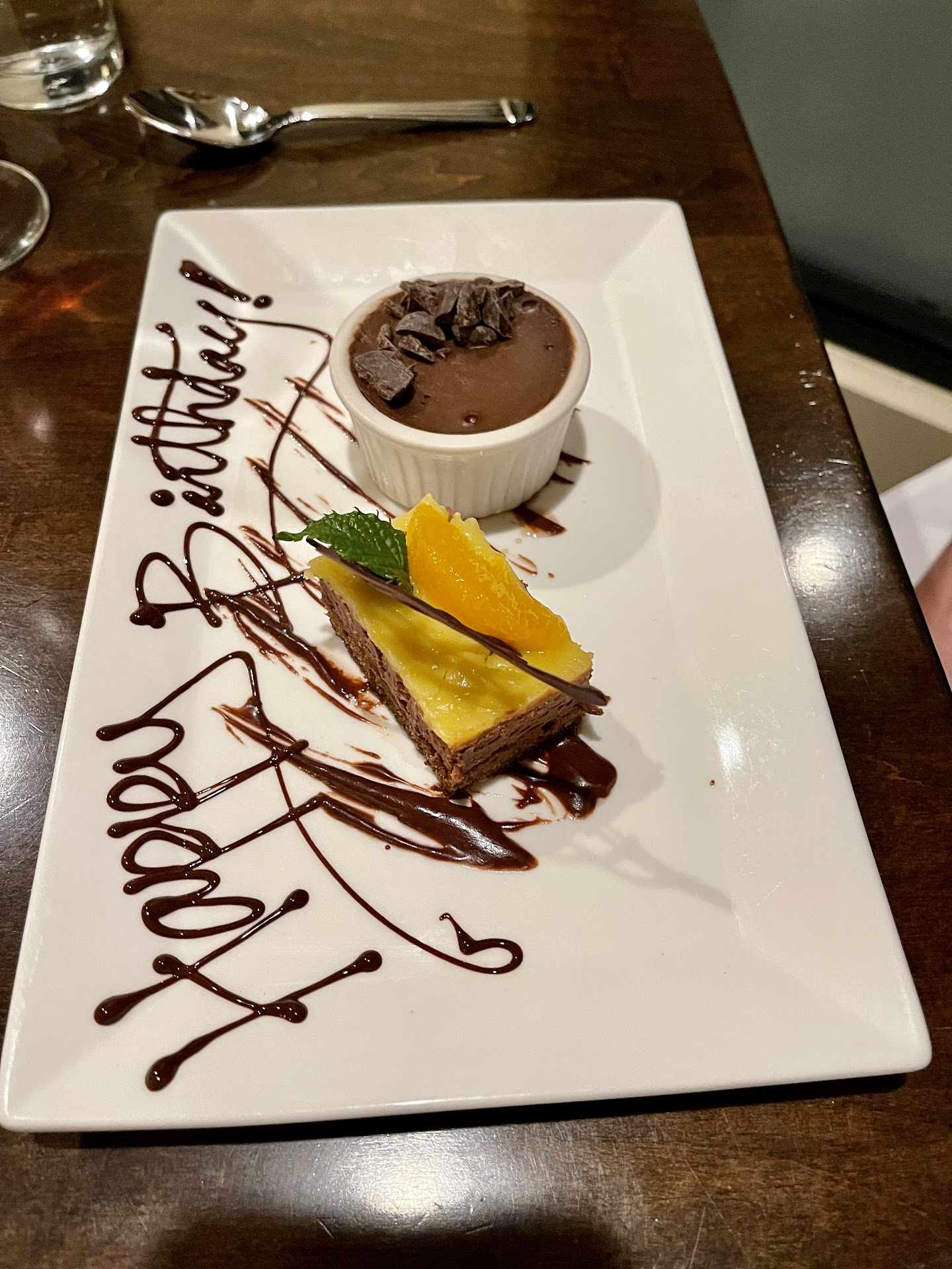 Read moreI'm very disappointed that I'm leaving such a low review today. I had been here a couple years ago and it was so amazing! Everything was perfect, so I wanted to bring a friend here to celebrate his birthday. Which they were very accommodating to, but one of the members of our party was vegan and we called two days ahead asking if we could accommodate that. I was very disappointed because the restaurant didn't plan anything or work anything out. We had to ask again while there and our server kept forgetting to talk to the chef about it. They gave no options on what he could eat, they pretty much selected his food for him. The mushroom pesto they made him was very bland, the mushrooms were soggy and cold. Our waitress, Jennifer was very rude to him she kept looking back to scoff at him and roll her eyes. He also touched some gum under the table and that's something you'd expect at McDonald's not somewhere like this. We also waited 40 minutes before we got any drinks. I'm really embarrassed I took my friends here. It was an enjoyable experience because we were in good company not at all cause the service or food itself.