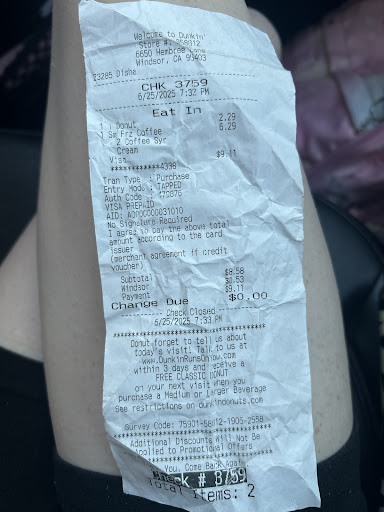 I made my way in my Super-Comnute to a job site in Windsor, CA. I appreciate the fact in enough foresight to arrive early so that I can take a breakfast break. This Dunkin is located inside the Walmart location. The staff at the front counter with a smile and how you do?? I appreciate the kind customer service.