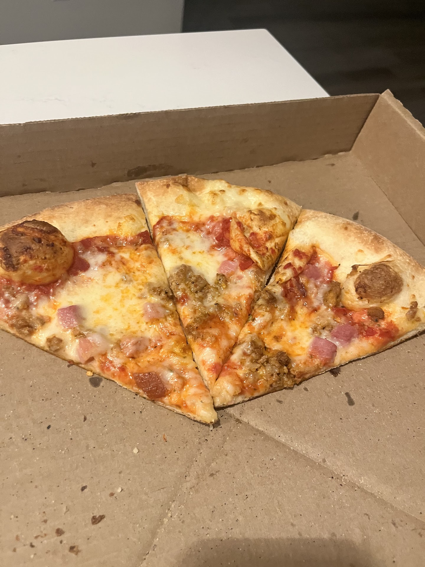 Read moreWhile visiting family in Windsor we felt the urge for pizza on a Friday night. Never being in this area, I wasn't sure where to go. I ordered for pickup. Large pizza with ham and sausage. When I arrived they got my pizza for me and opened the box. My eyes must have looked like saucers. The size of their "Large" pizza shocked me. You see, I hand tossed pizzas for 4 years in high school, so I know pizza. And, I'm quite particular about my "za." The pizza they served me was a medium sized pie from where I come from all day. Definitely, not a Large. Then, my next issue was the amount of toppings. There was barely any sauce, minimal cheese, about 8-10 small diced pieces of ham. Looking hard for a minute or so I was able to find several small chunks of sausage. Now, the pizza tasted ok. But could have tasted so much better with more of what makes a piece of bread, a "pizza." Staff was nice and friendly. Overall, I was quite disappointed. I most likely would not return and can't recommend this establishment based on my above...