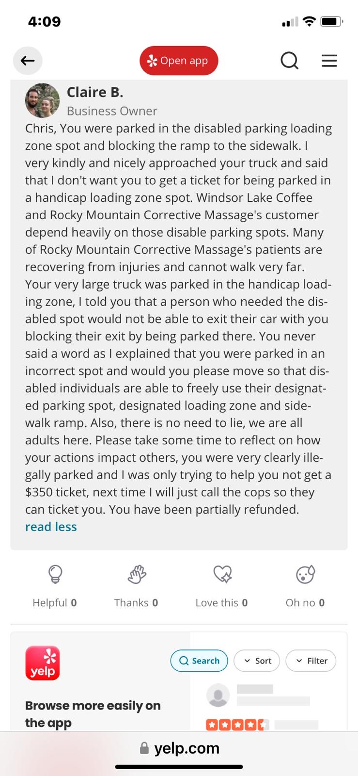 I am writing this review because I truly dislike people that are egocentric, entitled, and rude. This is the second time we go to this coffee shop, the first time was good, I have nothing to say about the first time we came here, my husband and I actually enjoyed being there to eat and the employee that attended us was super nice, thatâs why we decided to go back there. This second experience was with the âmanagerâ I put in quote because she is not the right person to be so called a manager or a leader. My husband decided to park on the handicap spot for a reason, he had an injury almost a month ago on his leg, which I will not get into a lot of detail because itâs not the âmanagersâ business neither anyoneâs beside a police or doctor, matter of fact he had to go to the hospital to get stitches, we were very worried about his leg being broken but thank god itâs not, and he is now walking without crutches. So the problem here is Claire as we know now that is the âmanagerâ of this coffee shop came up to us very rude, she mentiones to claim very nicely but no, she asked us to move because the spot was for handicap loading zone, she didnât asked âHey are you here to order?â or âAre you guys here to pickup?â or âAre you guys here to stay?â. What was the reason to come up to us, have the audacity to just say âcan you moveâ, she didnât even ask are you handicapped by any chance?, can you walk? Just very egocentric and gave the vibe of entitled just for being manager, which to say we are the customers and we are people to so we are going to treat you how you treat us. I also want to mention we werenât going to park there, he was just waiting for me to pick something from the menu while I was looking at it online. We didnât say anything obviously she just wanted attention or the validation for us to say â Yes, maâamâ, I donât know what Claire was expecting to us to say, âsorryâ no you are not the police or someone important and besides the energy and the way she approached us we were not going to give her the moral to say âsorry weâll move, have a great dayâ. We did move, it wasnât fair for us to do so, but we did it anyway. We are not fighters, we donât like to argue with random people, we did buy food we didnât leave, we still decided to buy food from there having many places with better costumer service, anyways, advice for you Claire I donât know much about you, but I am going to say that you are arrogant, you are aggressive, and a hypocrite, you donât deserve to be an a spot to be called the âmanagerâ, you should work on how you approach yourself as, not only for you, but for your customers that have high expectations of the place you work at.