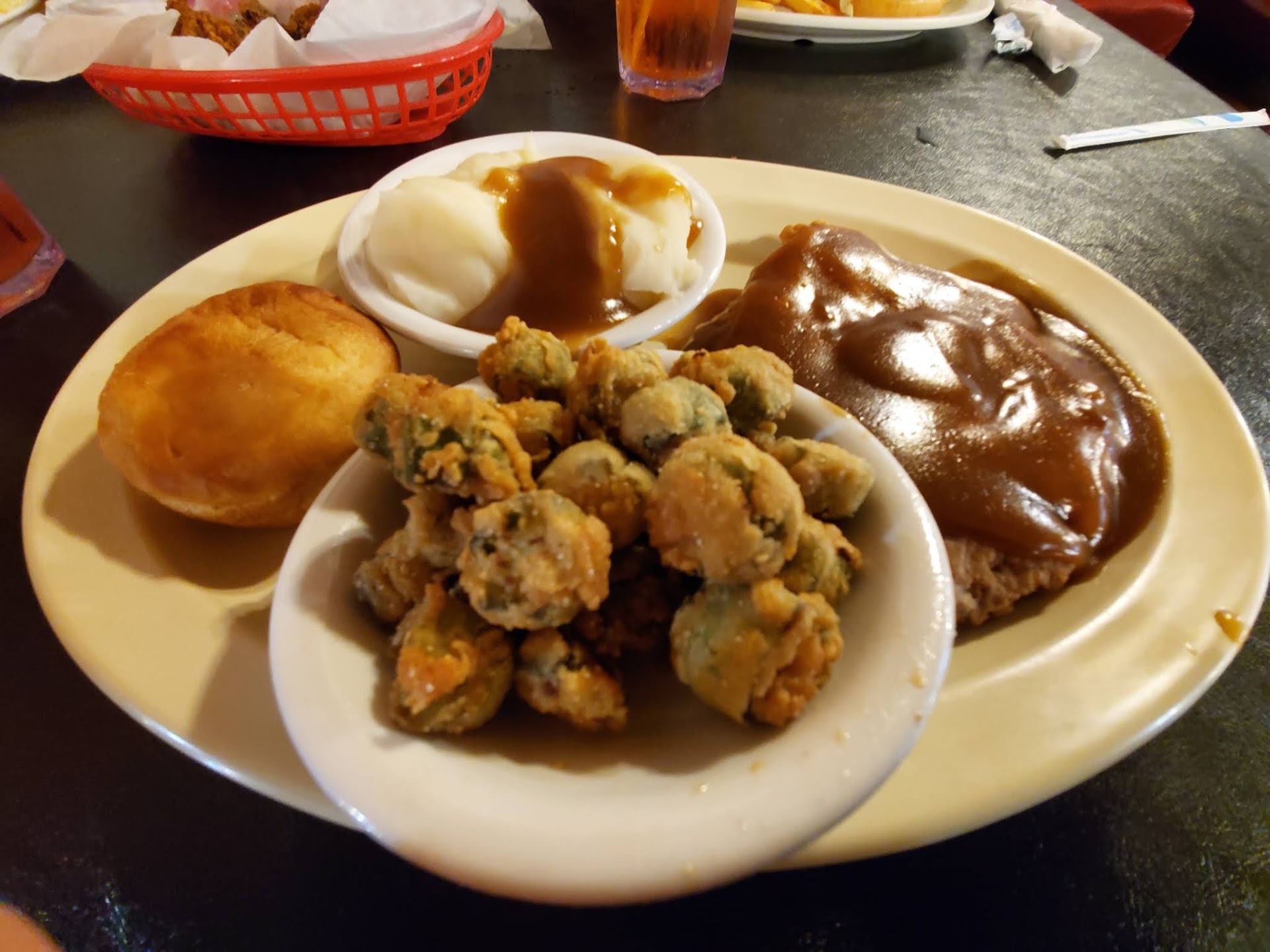 Read moreLast night was our first time visiting this restaurant. We went for dinner. I decided to just get a salad, and they have a salad bar which is always my favorite! I would have rated 5 stars except for the lettuce. If you guys would just change your shredded iceberg lettuce to some healthier greens it would make for a much better salad bar. That shredded iceberg lettuce reminded me of the limp lettuce that fast food places use. Otherwise, all your toppings were delicious. My boyfriend is allergic to bread & he ordered grilled chicken & coleslaw. We realized when we got back to the room that they forgot the coleslaw & gave him bread. Which sadly he can't eat. Always check your food before you leave any...