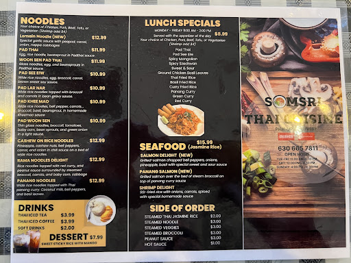 A small thai restaurant that pretty much has customers shoulder to shoulder. I was expecting them not to have an orange dish on the menu, but to my surprise they recently added orange karaage which is just lightly breaded white meat chicken chunks tossed with a very mild orange sauce and vegetables. It comes with a side of fried rice. I also opted for shrimp cigars which is just shrimp and basil with a spring roll wrap. The entrees are about $13-$16 and the appetizers are between $8-$13.