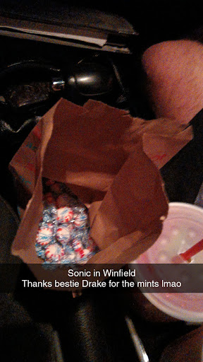 This sonic has made the attempt to out do the Arkansas City Sonic. Which is impressive that it could do so. First the stall we first talk/order button showed "Order button button has been activated." We sat for a long while called for assistance from passing car hop. She said yeah this one doesnt work. No sign and car hops just walking by not telling customers. We moved to another stall. On the other side, same freaking thing but atleast another car hop told us but after we had parked. Third stall ordered food. Asked to speak to manager, he offered 10% discount. But my request was that he atleast put up "out our of order" on station. Order came out incorrect Ketchup and mustard only route 44 soda sonic burger meal and #10 crispy chicken meal no modification. Burger came with fixing for chicken sandwich. Chicken sandwich had mustard and ketchup only. But screen showed correct order info. At this point we needed to be on our way. Oh yes I ordered a Cherry chocolate Dr. Pepper. They put the chocolate and cherry in first then ice and most likely soda last and not mix. They put so much chocolate in you could not mix by swirling cup or using straw. You had pull the straw half way out to drink. I gave up stop at gas station bought a soda tossed in trash. Tarter...