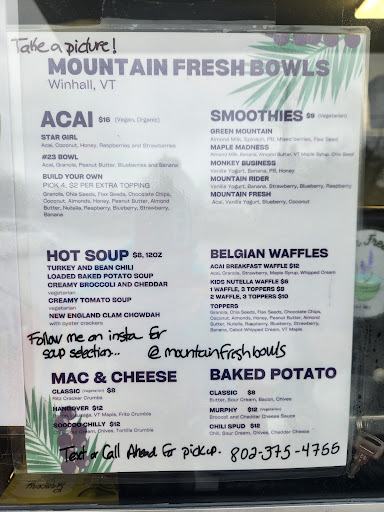 Read moreI have just returned from a visit to Manchester,Vt. and had the good fortune of having a fresh bowl of fruit from the Mountain Fresh food trailer located at the end of the driveway to the Orvis outlet on Main Street..it is a real treat..so much so that I returned the very next day before leaving for my home Mass, nice to have something healthy from a food trailer..when in the area treat yourself...you will be...