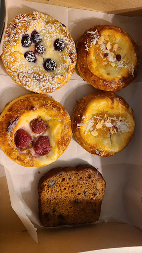Very cute place with wonderful displays for the variety of pastries and goods offered. Everything looked so fresh and tasty. We settled for some danishes and a slice of zucchini bread. The bread was moist and delicious, and the danishes were crisp and flaky yet also soft and sweet! Very good.
