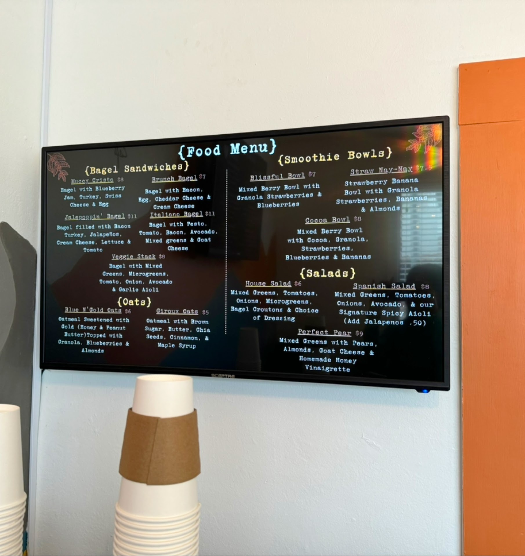 Read moreAbsolutely lovely, from the drink and food selection to the decor. Custom drinks, build your own bagel.. lots of variety. They even have white coffee! My only issue is the wait time. For it to take 30 minutes to get your order when there's three workers behind the counter is honestly crazy to me. The staff feels very disorganized. There's been a few times where me and the other customers are sitting there, looking at each other like "...." It sucks. Every other aspect of this business is...