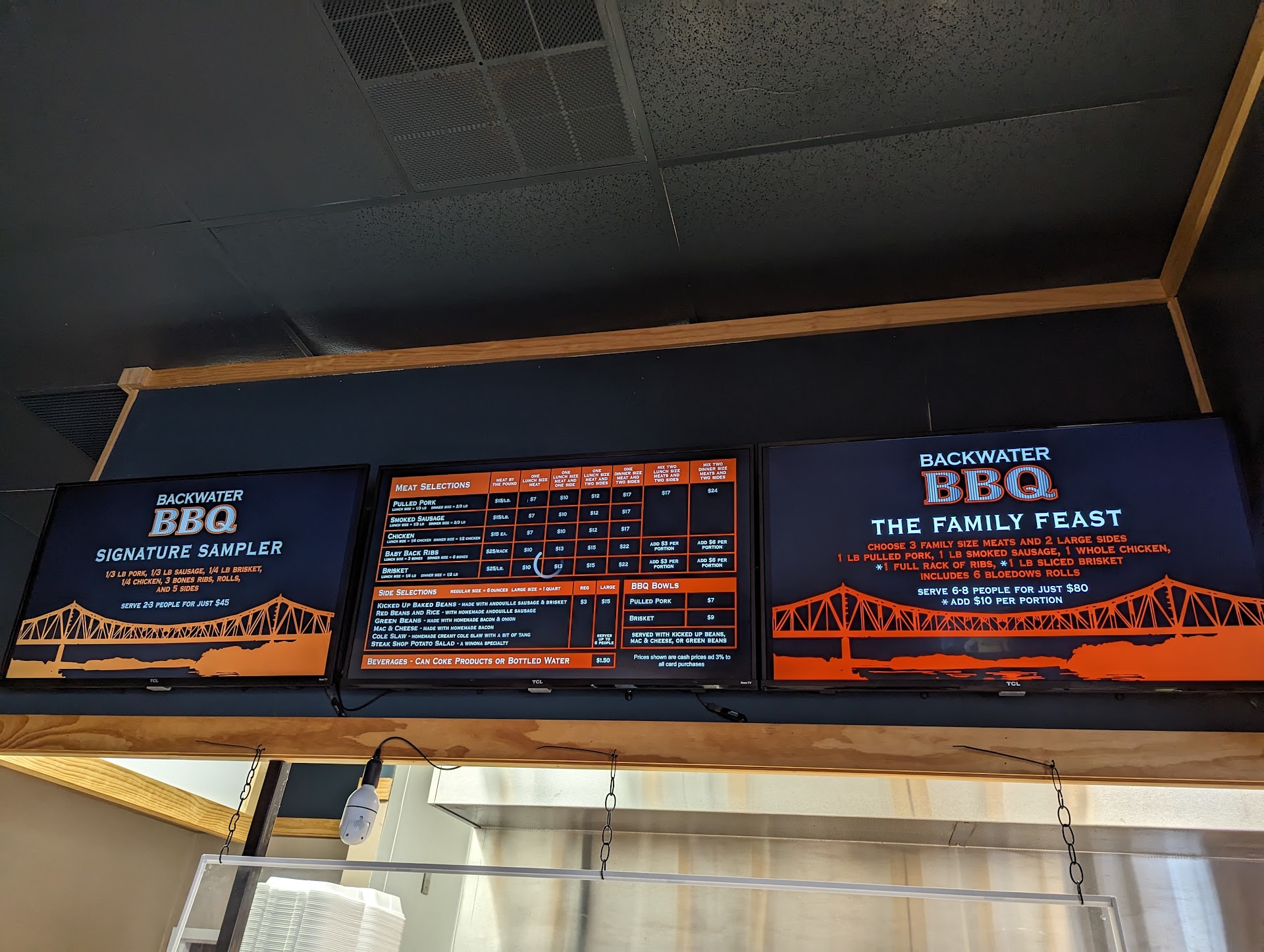Read moreTo put this in context, my wife and I have been known to drive to Kansas City for the day, on more than one occasion, just to have proper ribs. With that in mind, I will say that backwater ribs are excellent. I feel lucky to live in a town that has such an excellent barbecue joint. Go there. Get ribs.