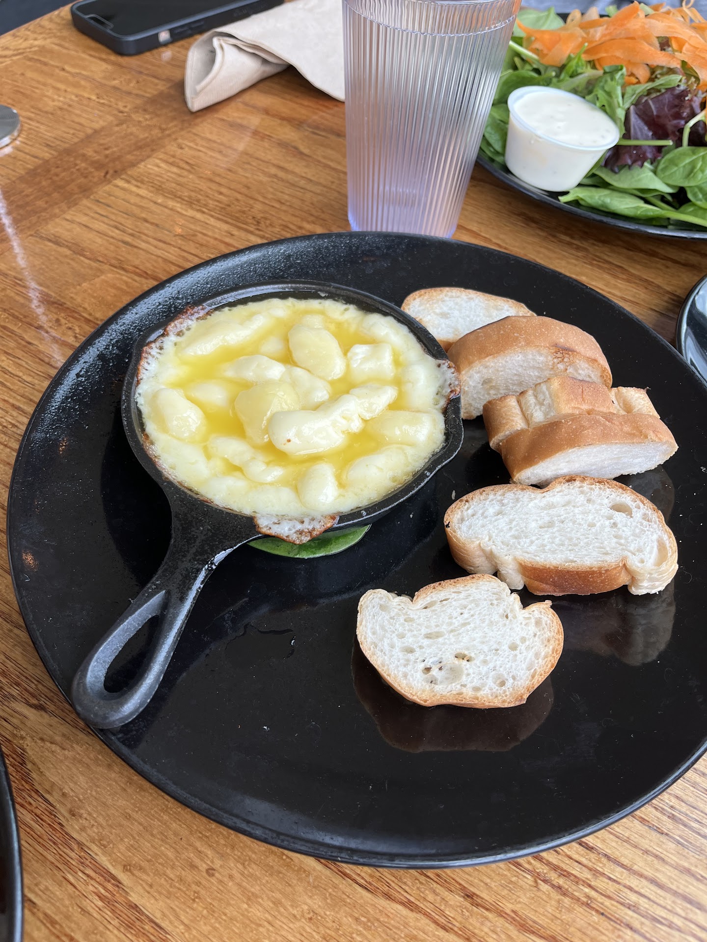 Cons: -not a ton of parking if they are busy -you walk in and have to stand there and order off two huge boards right when you walk in, no menu books available, very small waiting area with only one seat -it's self service. You get your own water and silverware and find your own table. For the price of the food, this is kind of outrageous. Then there is the next bullet point down.. -**when you order right when you walk in, they ask for a tip right away. I don't feel comfortable doing this so I said on the card reader no tip. I think this greatly affected how we were treated. Everyone else's table was checked on but ours. I did a self service water, but my boyfriend did a coke and the female host who checked us out never came once to see if he wanted more while the other tables had their drinks checked on by her. After I had my yummy food, I went up to the Register and did another transaction for a tip. The sweet bartender helped me out and was very grateful. It's just not right to ask for a tip right away in a restaurant. -I ordered the flank steak entree and ordered it medium and it was pretty brown in the middle and not as juicy as expected. Still good but wanted a little bit less done. -things are fairly expensive there. My flank steak entree, fish Tacos (came with chips), and an app was $82. They don't list prices on the boards for everything. It's nice for a little bit pricier date night. But isn't a fancy atmosphere so.. -The skillet cheesecurds were hard to eat with the bread pieces, it kind of all molded together. Good but interesting trying to get it all on the bread. Very greasy. -The windows were full of cobwebs. We say inside but would have loved a web free view of the river.