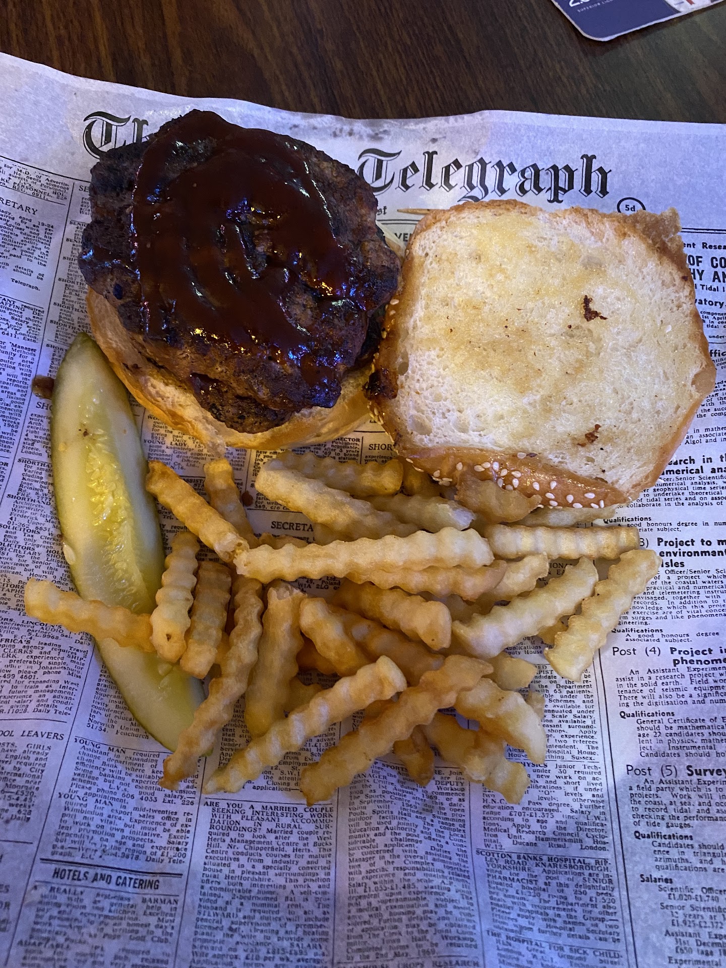 Kids had great meals and said it was all delicious. With the new menu (again, been about 10 years) I did have to browse and settled on the BBQ Burger, and made it a double (standard is 1/3 lb). It came with potato chips or you could āupgradeā to French fried for $2 or waffle or sweet potato fries for $3. When the plates came out, the portions on the āupgraded friesā were rather disappointing. The childrenās fries were almost double the adults āupgradedā fries. So with that, the additions charge seems rather steep for what you get.