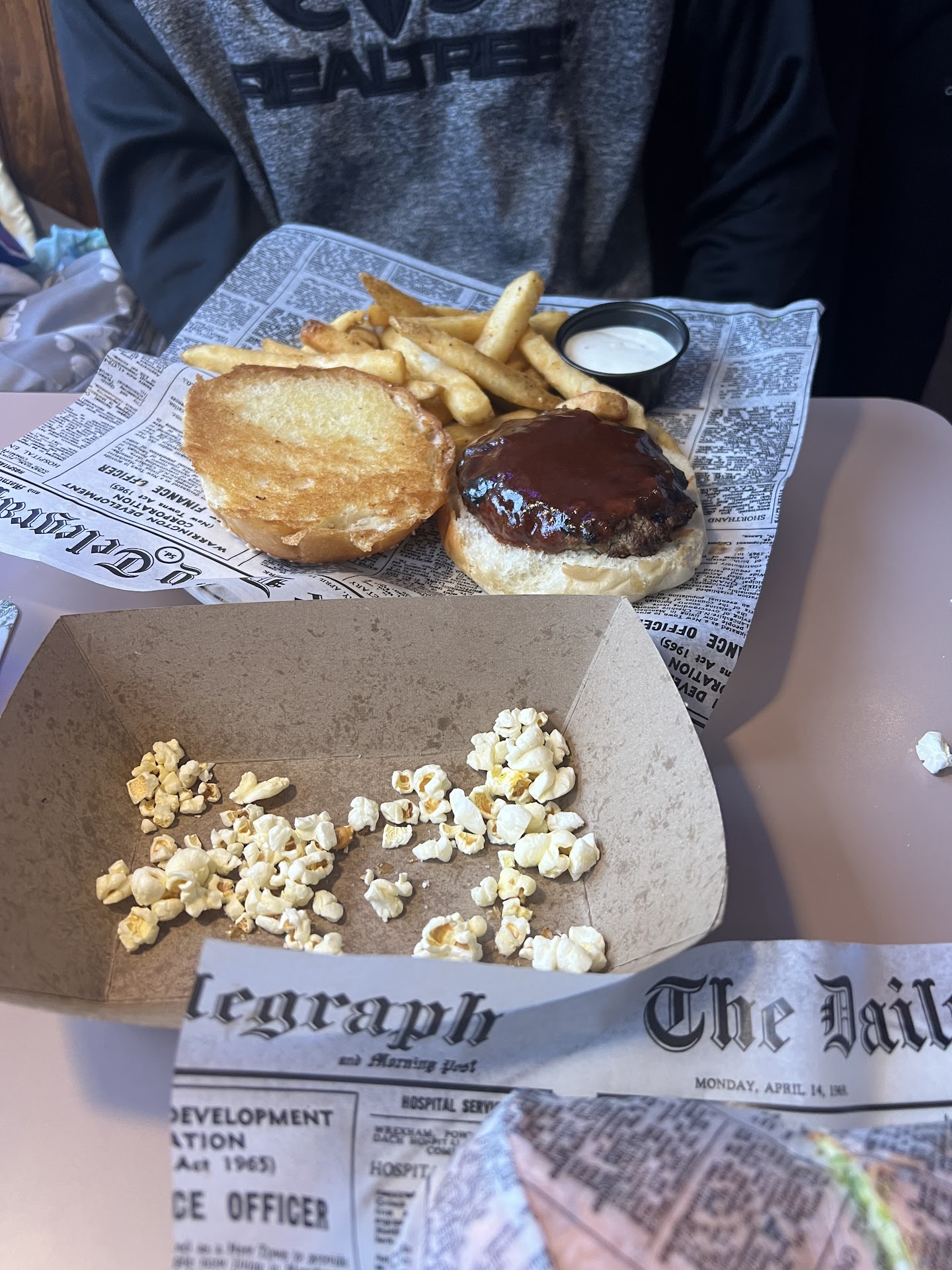 Ā Ā Ā Read moreThe food was pretty good, I enjoyed a pepper jack melt that they had on the menu. The part that I did not like is that someone brought a puppy/dog into the bar area which is first of all not sanitary. Then at least 2 of the servers were petting the dog and rubbing on the dog. Then one of the servers went over to the popcorn machine and without washing her hands went and scooped up popcorn, and the other server went behind the bar and served a drink without washing her hands. Also, the person that had brought in the dog went behind the bar grabbed a glass, then scooped a glass of ice and poured soda, and did not wash his hands before doing so. The dog was also placed on a table. Even though the food was good, because of what I saw, I refused to bring home my leftovers, because I just couldn't trust the sanitary...