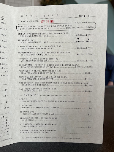 Read moreHowl is what Winooski (and Vermont) needs! A beautiful and comfortable space in which to enjoy a wonderful selection of draft offerings as well as killer small plates. The draft list is mercifully short on hop bombs, with a well thought out selection that leans lager and euro style, from top area producers. The food is creative, tasty and unpretentious. Each dish feels like the perfect accompaniment to whatever drink is in front of you. If I lived closer, this would be my...