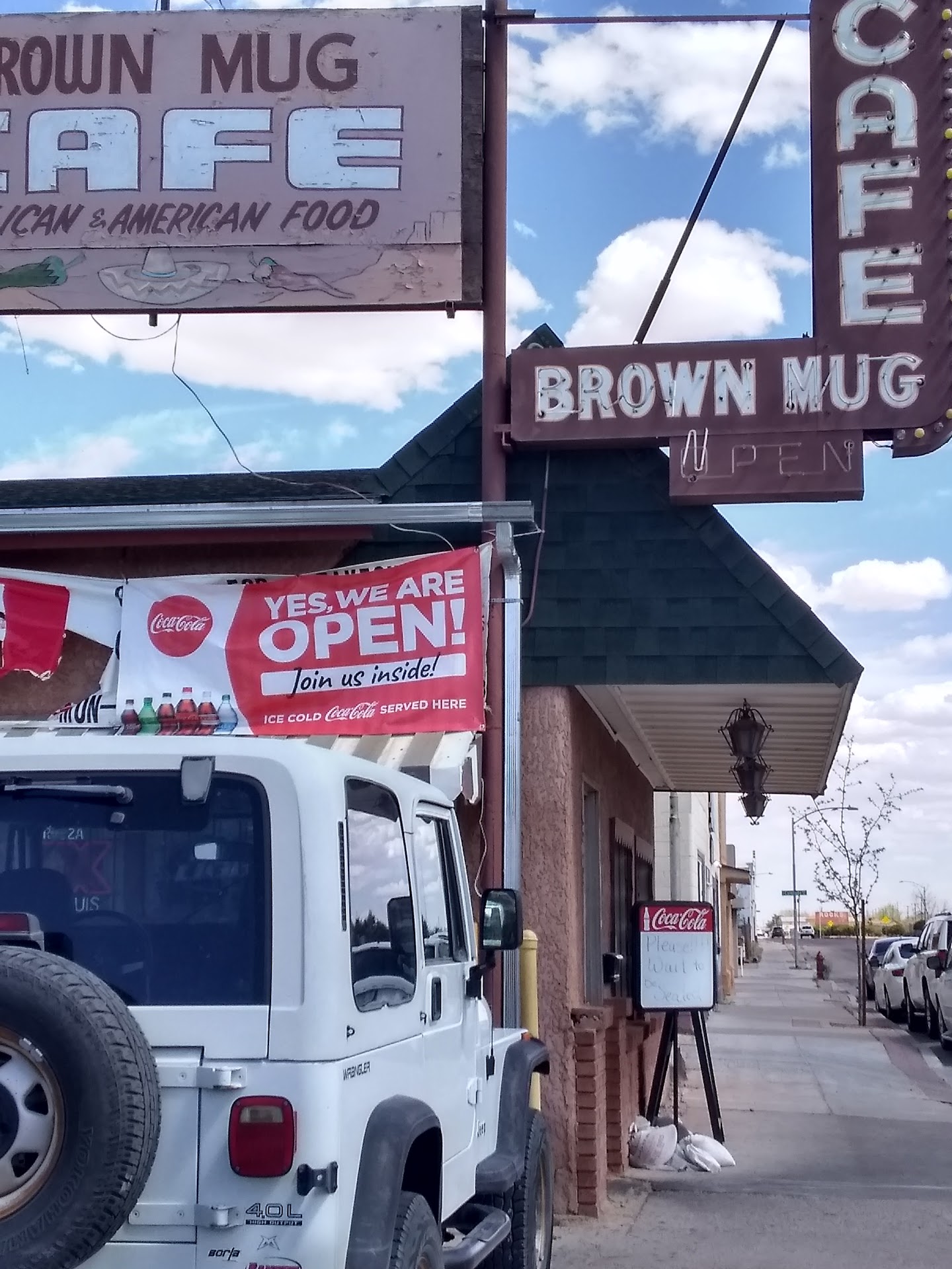 +JMJ...Nice, quaint, very low key cafe with very friendly staff. I believe my friends told me that the cafe is family owned. A claim to fame I found fascinating was the visitation of actor Harrison Ford. The memorable moment was captured and a photo placed near the booth he sat in. My meal of Huevos Rancheros was yummy, but my friends' fry bread taco looked yummier. UPDATE: Saturday, 12 September 2020..A friend and I made a day trip from Cottonwood to Winslow. After sightseeing and enjoying by friend's reminisces about his boyhood escapades, we enjoyed Navajo Tacos from Brown Mug Cafe. They are handling all the restrictions mandated by CDC well but it is a small cafe so my friend and I ordered out. We were greeted at the door by a very nice young lady. After taking our order, she said she would bring it to us. My Navajo Taco was DELICIOUS!!! Every bite was a taste delight with the flavorful meat and bean mixture topped with fresh shredded lettuce, diced tomato, shredded cheese and medium hot salsa (on the side.) Wasn't able to finish my meal and look forward to eating the leftovers. Wonderful eats and I highly recommend stopping in for dine in...