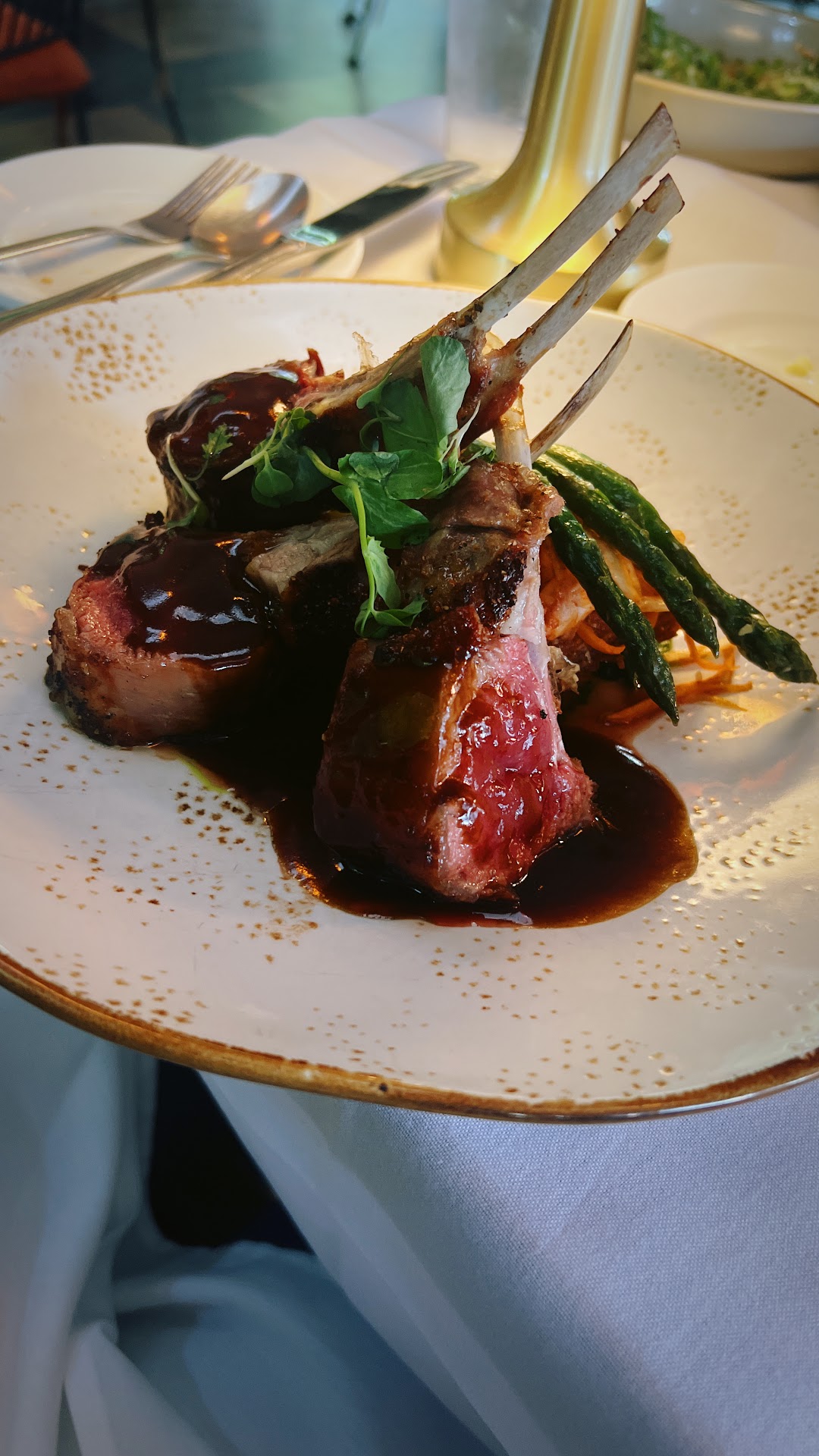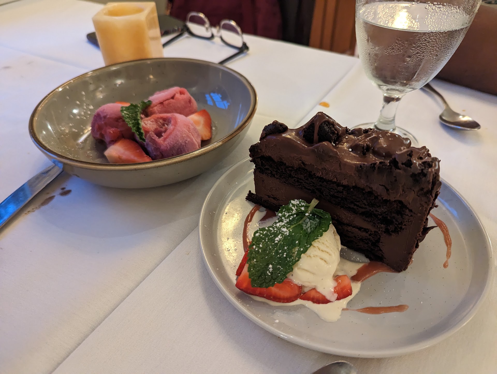 The food was delicious. My date had the lobster over lobster and I had the elk. She loved the lobster, stating that the sauce was just enough to highlight but not outshine the lobster flavor. I ordered the elk medium rare, expecting a bit on the rare side. It was delivered medium well, but was still very good. We ordered snails and brussels for an appetizer (both amazing), so the smaller entree sizes were actually perfect and we left full.