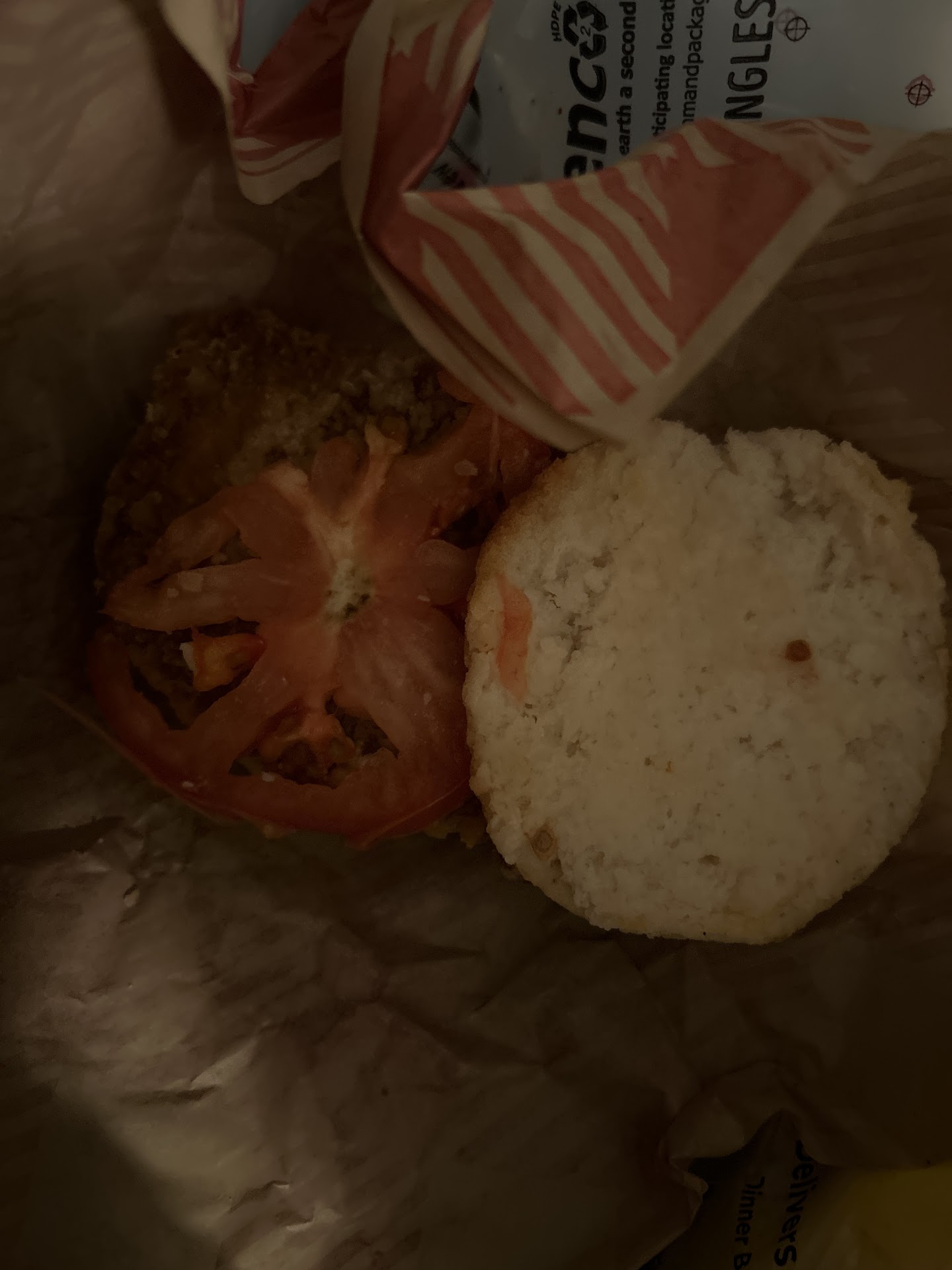 Updating an earlier review. I am so disappointed in the food I purchased this morning. I waited patiently at the drive-thru and finally placed my order with a very pleasant young lady. But when I arrive at work and open my bag, I saw the saddest excuse for a biscuit I've ever seen. The chicken was great...and all I could actually eat. The biscuit was so thin, I dont know how they managed to cut it half. Then it was hard and overcooked. So not cool.