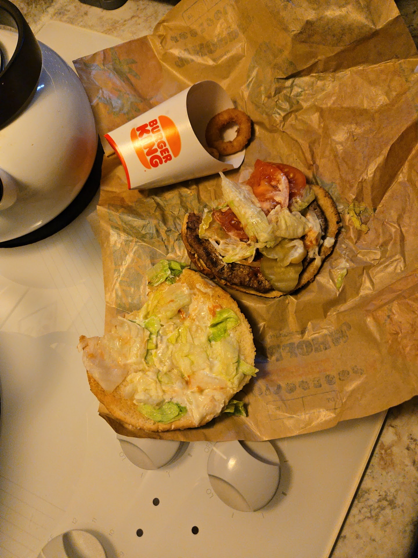 My chicken fries could be snapped in two. They were completely dried out. The whoppers look like they were sat on and dont taste like they used to. Original chicken sandwich? My favorite item, its so old and cold every time. I have yet to return anything for a refund, but I regret the money I spend every time I go. I think I wont be back. I think theres a reason burger king is going slowly out of business. Stop stacking for a rush, make it fresh. Make it right. The food we got tonight was completely inedible. 22 dollars, wasted. And the straw that broke the camels back after waiting 15 minutes for my order. Disapointment!!