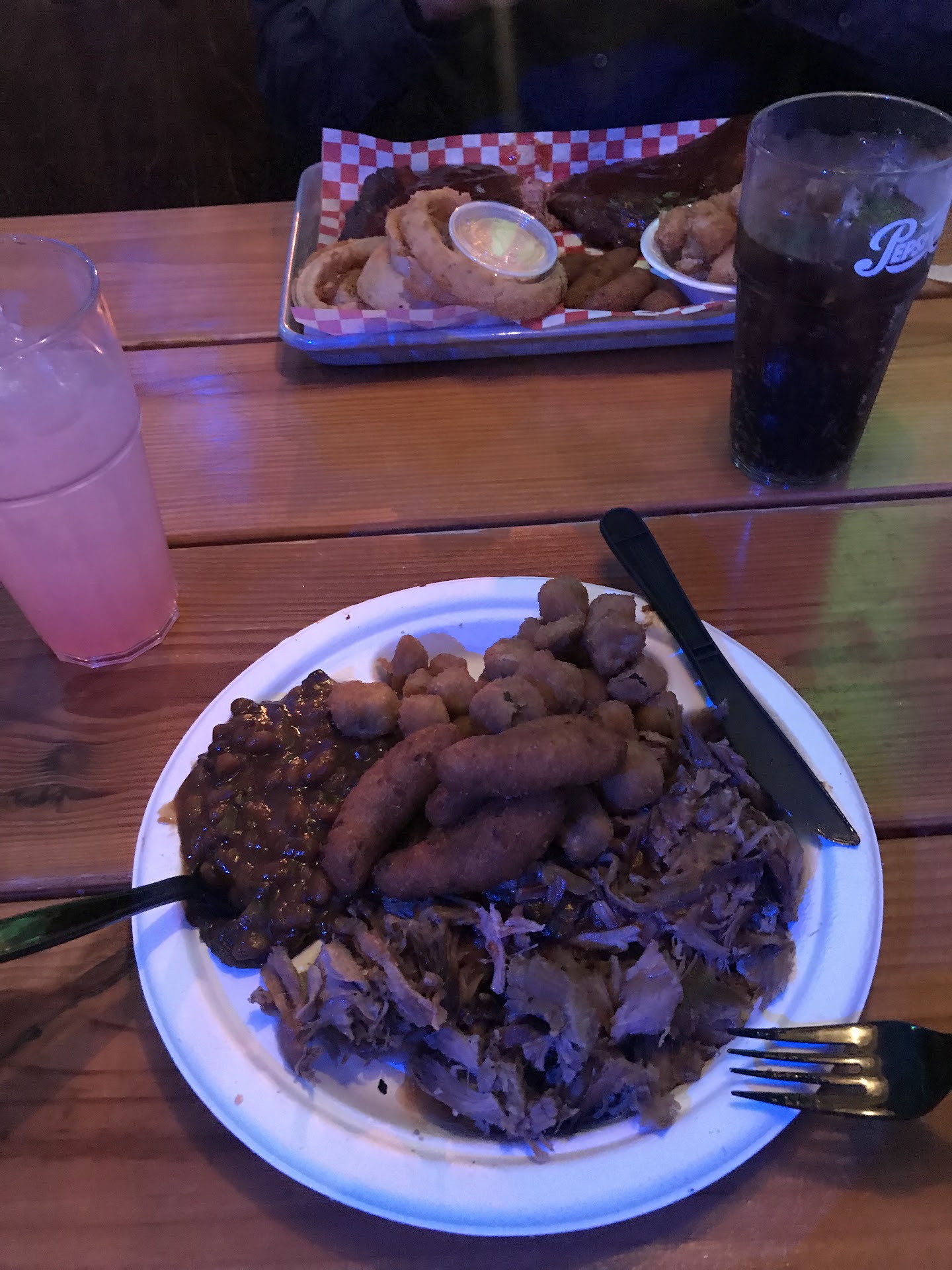 Read moreWell, the ambient was really cool and they have mini SNES consoles to play I guess. The food is served in less than 3 minutes and the waiter is taking your order in less than 1 so there’s not really much time to use that and you will feel bad if you stay after eating and make other people wait in line (not to mention the controllers are greasy). All the food is pre-made and I’m writing this review as a European so I do not understand why everything was sugary but the fried food was not crunchy, you can tell it has been fried for some time. I do not know if this is American food, but it lacked spice and it was compensated with plain boring sugar. Also the plate felt aggressive, there was no neutralizer, no bread, no acid, no sauces other than spicy ones; I felt bored with the first 1/4. The place is 4 stars to me, no napkins, just paper towels which I find horrifying. Plates are made out of polystyrene and the forks out of plastic which is medioambientally damaging. The attention is 5 stars, although the waitress didn’t know the ingredients from the sides too well. Food.. the food really just felt like taken out of a community center and they don’t give you a glass or a pint for your beer, 2 stars.