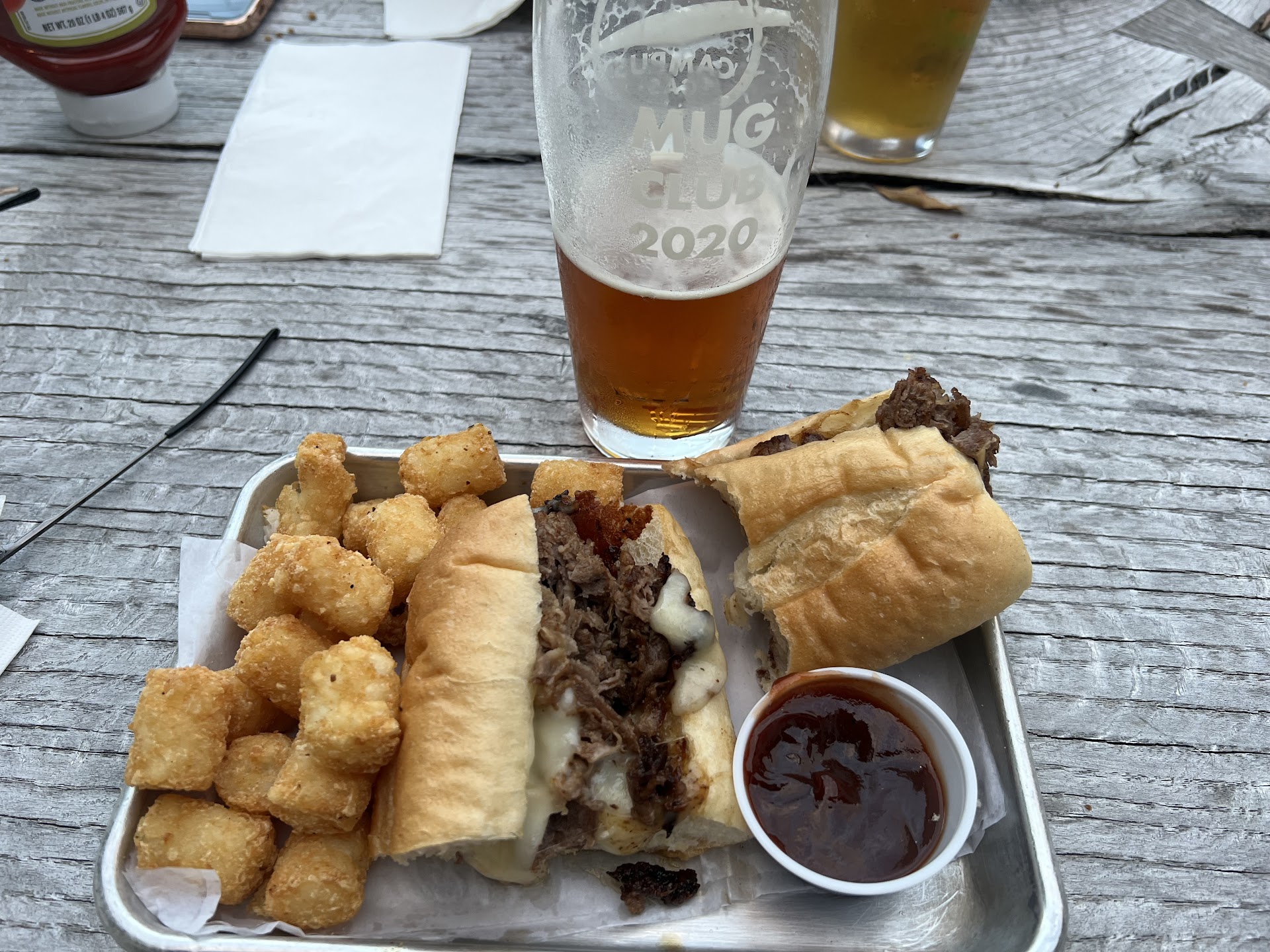 Food is great, the menu isn't too crowded and has a few really good appetizers, good selection of a few hotdogs, six or so burger options, and then a decent list of sandwiches. The food is all super good and portion sizes I feel maybe have gotten slightly smaller in the couple times I've been now but still good sized, very filling, and of high quality.