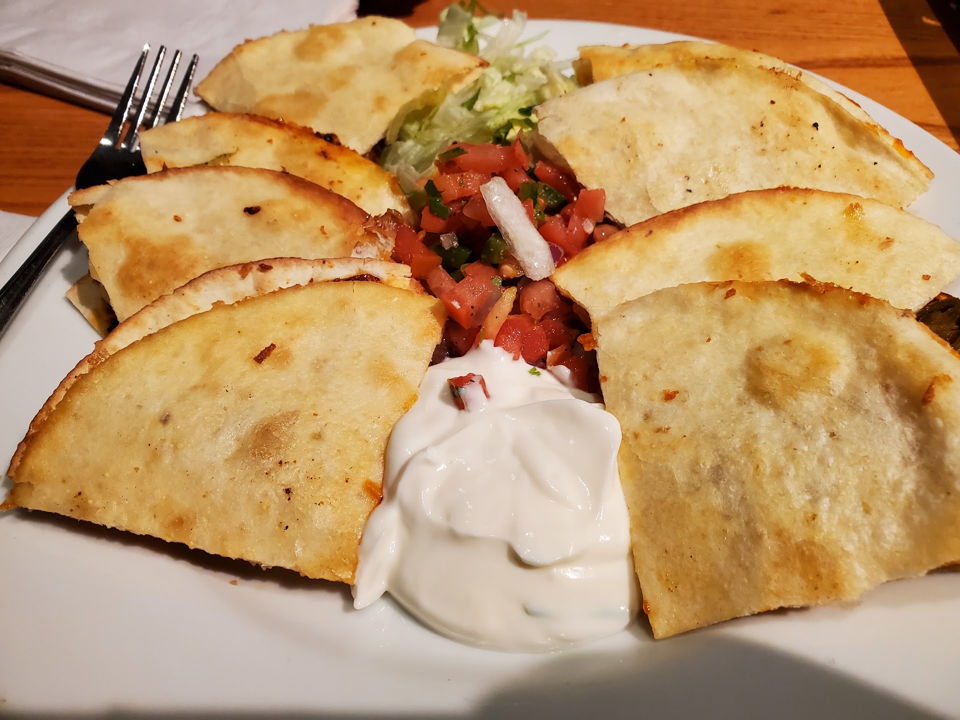 Tonight was the last straw for us for a while. I ordered the brisket quesadillas, which was laughable considering it was bordering on $13. When I think brisket, I think at minimum, "visibly discernible meat." Well, I attached the pictures, you can judge for yourself. Not only was every single slice filled with absolutely baffling levels of pickled jalapenos (and yes, I do mean pickled, the vinegar was overpowering), the supposed brisket was literally the size and consistency of store brand bacon bits. It was more of a crumbled meat paste spread than anything resembling a protein. They ought to be ashamed for calling this "brisket!"
