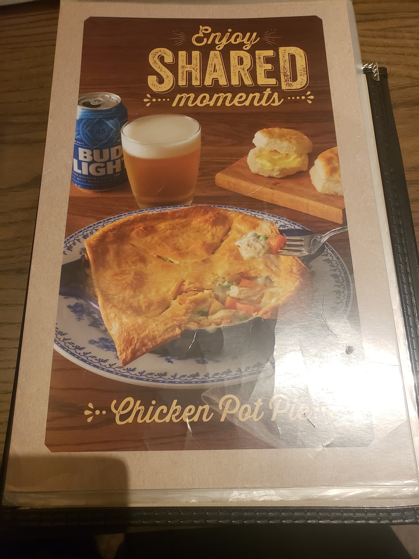 And my spouse reminded me that according to my recommendations, we added 15% tip to the order. That was $20 wasted. I doubt seriously that I will ever tip any cracker barrel take out, that...