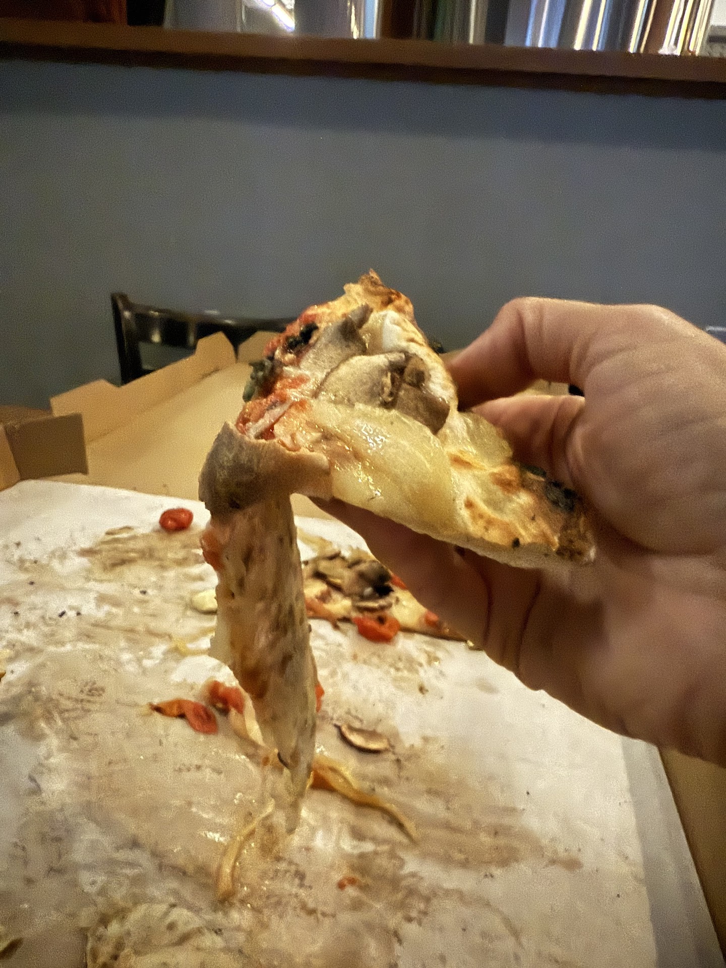 Which also brings us to the size of the pizzas. If you have less than four people you're probably bringing some home. We look a little gluttonous getting two larges for just 2 people, But the goal for us is to have leftovers for the next couple nights. It reheats very well.