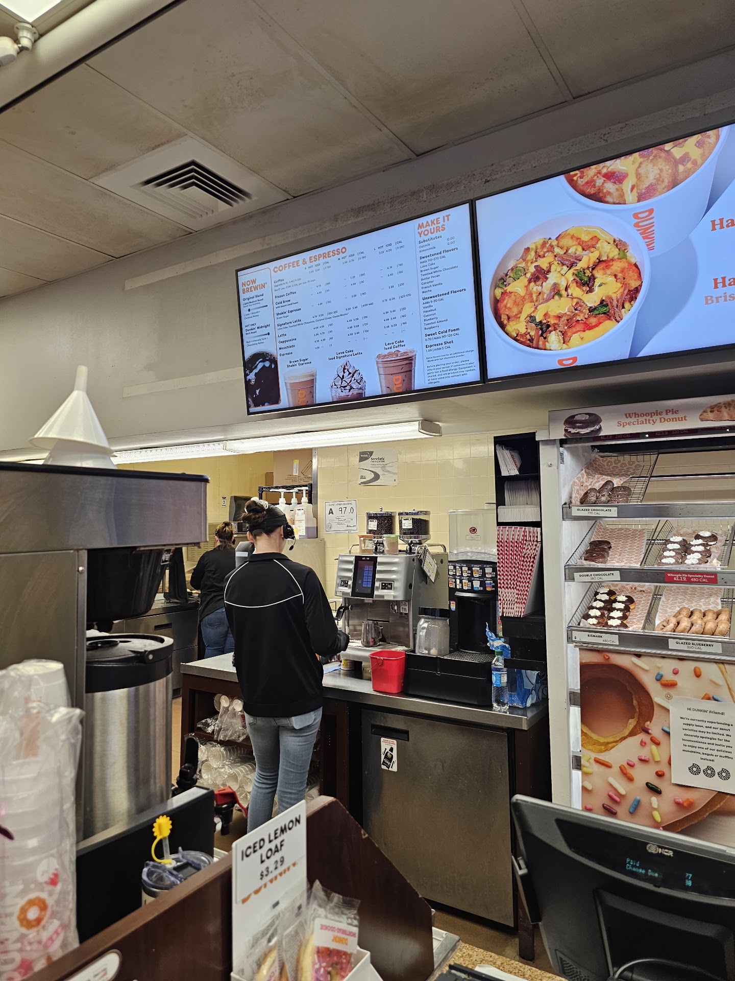 Read moreHonestly the worst DD experience I've ever had. We went inside to order because we had two cars and my dtr was buying me a coffee so we thought it would be easier. We ordered 2 medium cookie dough cold brews with the cold foam. We waited, probably close to 15 minutes (and we were the only customers in the store) while only one person (initially) made all of the drive thru orders while our cups sat to the side. There were other employees there (at least two that we saw) but only one came to help, selectively it appeared; she made like two drive thru drinks then sat at the counter texting one phone while looking at something on another. Maybe she was the manager and doing something work related, idk, but she never acknowledged our existence, asked what we were waiting for, nothing. Finally, the girl making the drinks made ours. We got some kind of Large coolata, not what we ordered at all. It tasted awful. Too sweet to even drink. My cup was a hot mess with coffee and syrup all over the outside. I wiped it off before leaving but it still got all over my pants. Really...