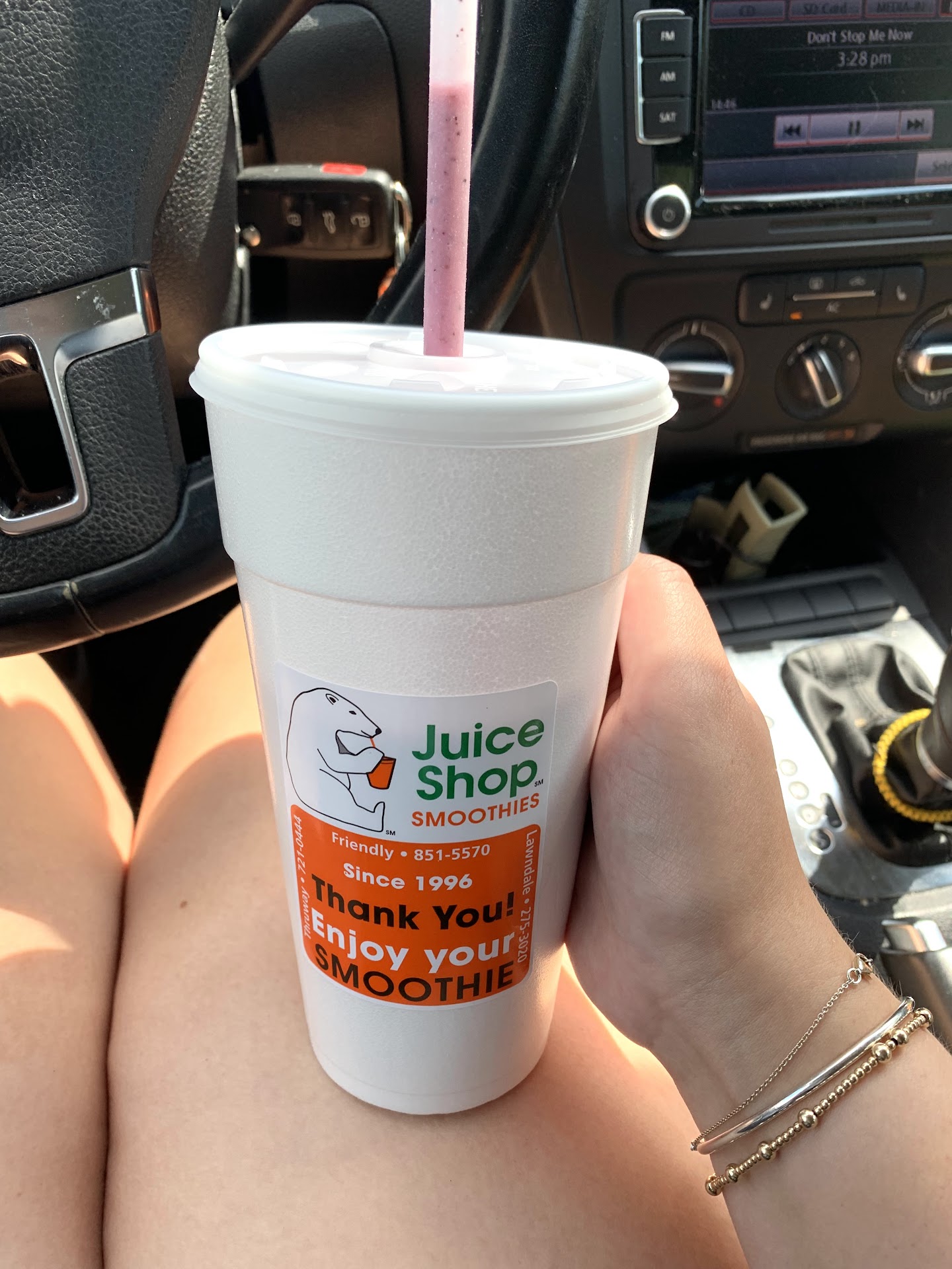 Read moreToday was hot!! The heat index was around 100. Overheated from shopping in the area, we saw their sign and had to give them a try. It seemed like the perfect way to cool off. At first I thought the prices were a little high but desperately wanting a cold smoothie, I was willing to pay the price. I was pleasantly surprised that my smoothie was served in a 20-24 oz (not sure the exact size) and in a Styrofoam cup! I ordered the strawberry splash and asked if I could add blueberries. They said I could and it was delicious. The only thing I would change is leaving out the banana. I love bananas but they use extremely ripe bananas. They were sitting on their counter and most were very brown. Just too ripe for my personal preference. Overall, I felt the price was definitely worth the quality & quantity of...