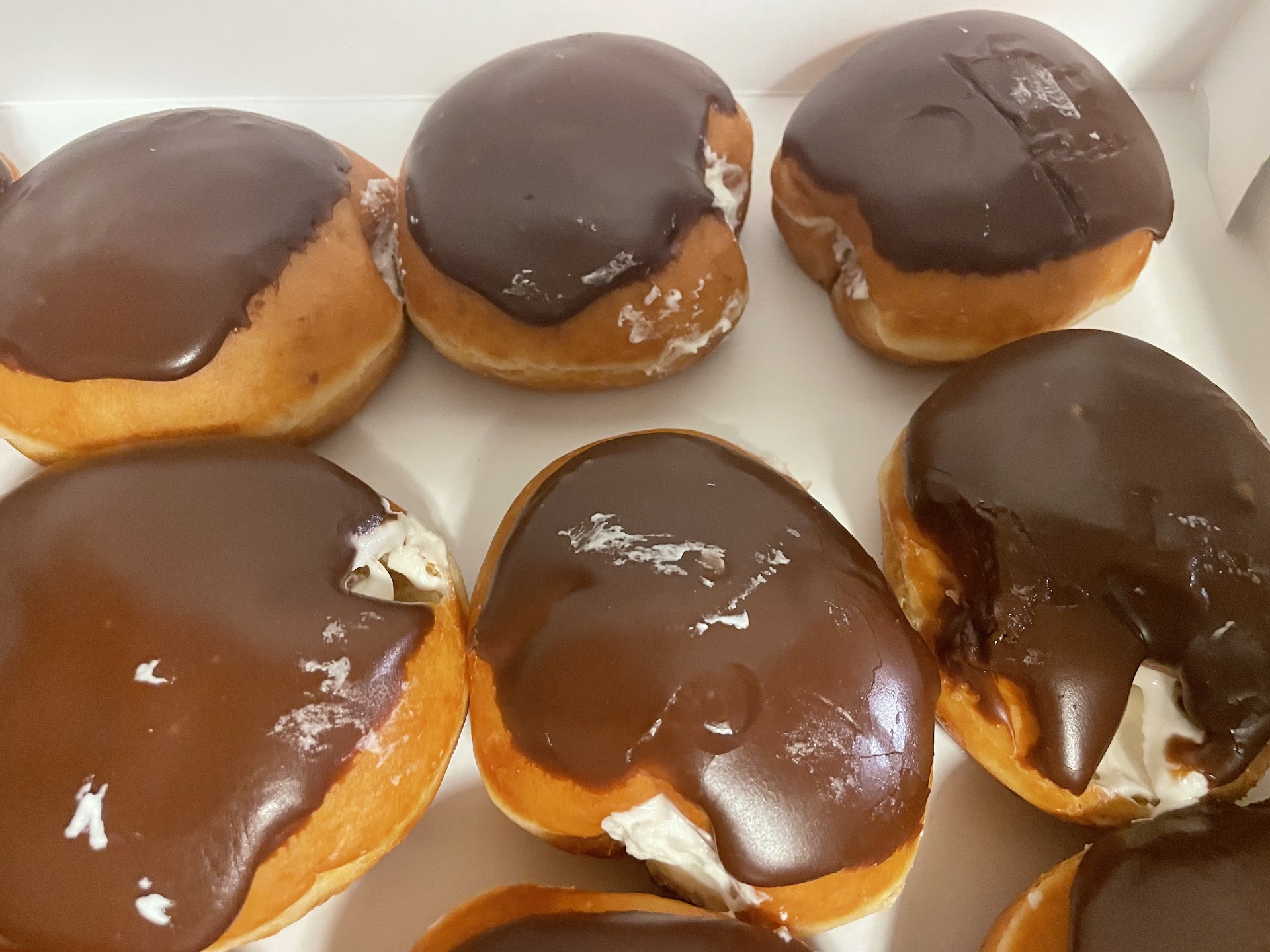 All three donuts were stale. I do not know how long they had been sitting in there, but they were so tough that you could not eat them and feel good about consuming all that sugar so I wound up scraping off the chocolate that was on top of the chocolate cream filled ones And when I got home, I broke it up a little bitty pieces and took them out to the birds because that was about as good as you could of a use for those donuts except just to throw them away in the trash.