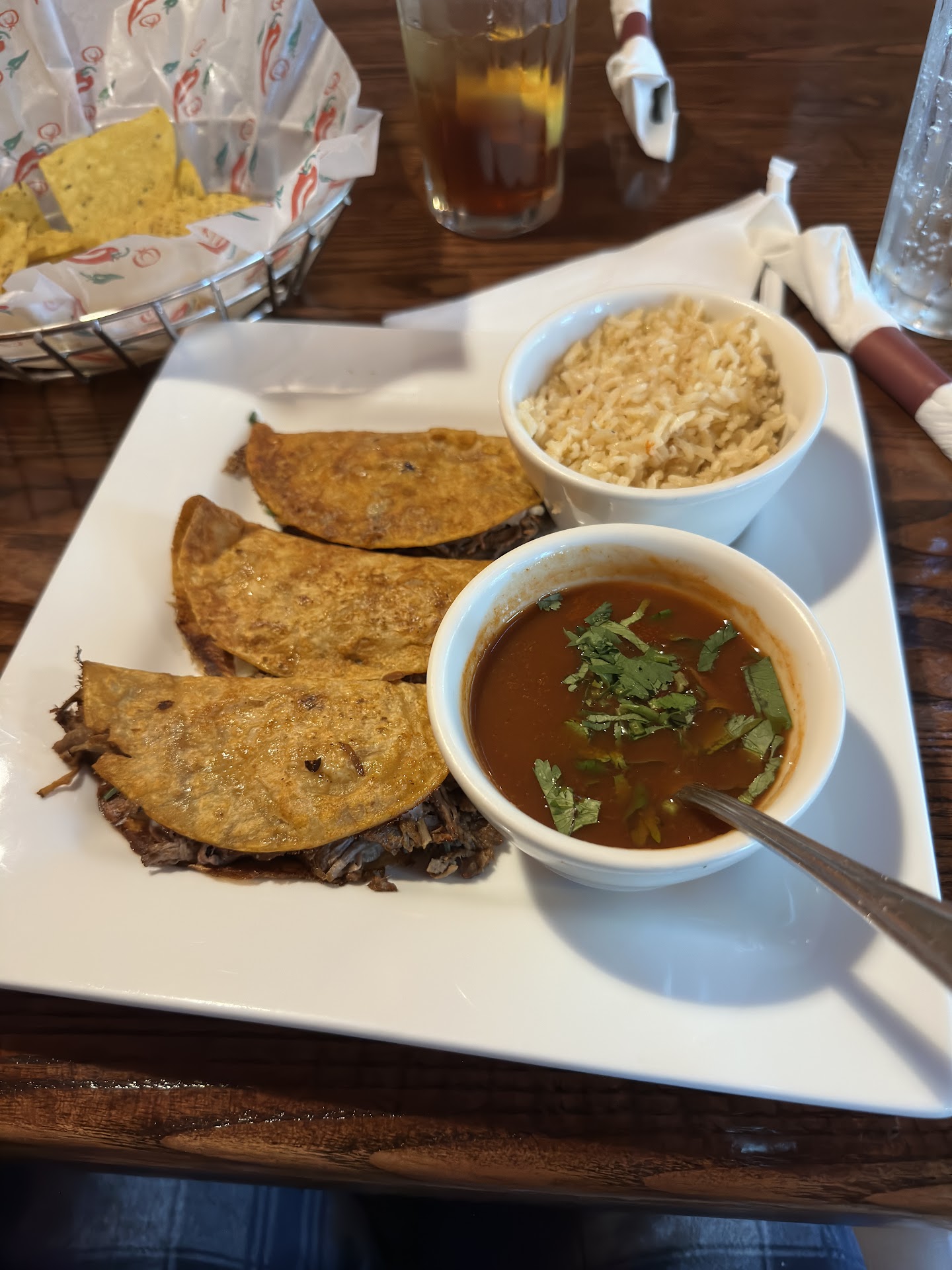 Well, I hadnāt heard about this place, it was recommended to me by family Last week. Boy, do I wish that I had discovered this myself. I love Mi Pueblo, but thereās options, are like most restaurants, and is my usual go to. But after opening the Menu at this restaurant, you will ask yourself, āboy do I have days in the year to try all this?ā The service was great, nothing crazy. Our waiter brought us our food, than we saw absolutely none of her until our check, which I donāt mind. We were close to the kitchen, so if I needed anything I could have asked. But after taking one bite, I knew this was going to be the new spot! I ended up grabbing the QuesaBirria. Basically a Quesadilla & Birria Beef, served with rice & Broth to dip in. The broth was amazing, and complimented the queso so well. The rice was warm, flavorful, but a tad dry. The Beef was amazing! Juicy, just enough flavor to enjoy, and not overpower the cheese, and cooked to perfection! Definitely a Go to now! Next time Iāll get the Carnitas as that is my next Favourite. The drink menu was amazing as well, but did not get any drinks this visit. Definitely will give there Margaritas a try next time! 9.9/10 Must try if you live in the area, or are willing to travel a bit! Never been sad in a Mexican Restaurant (and never will!š), and that definitely...