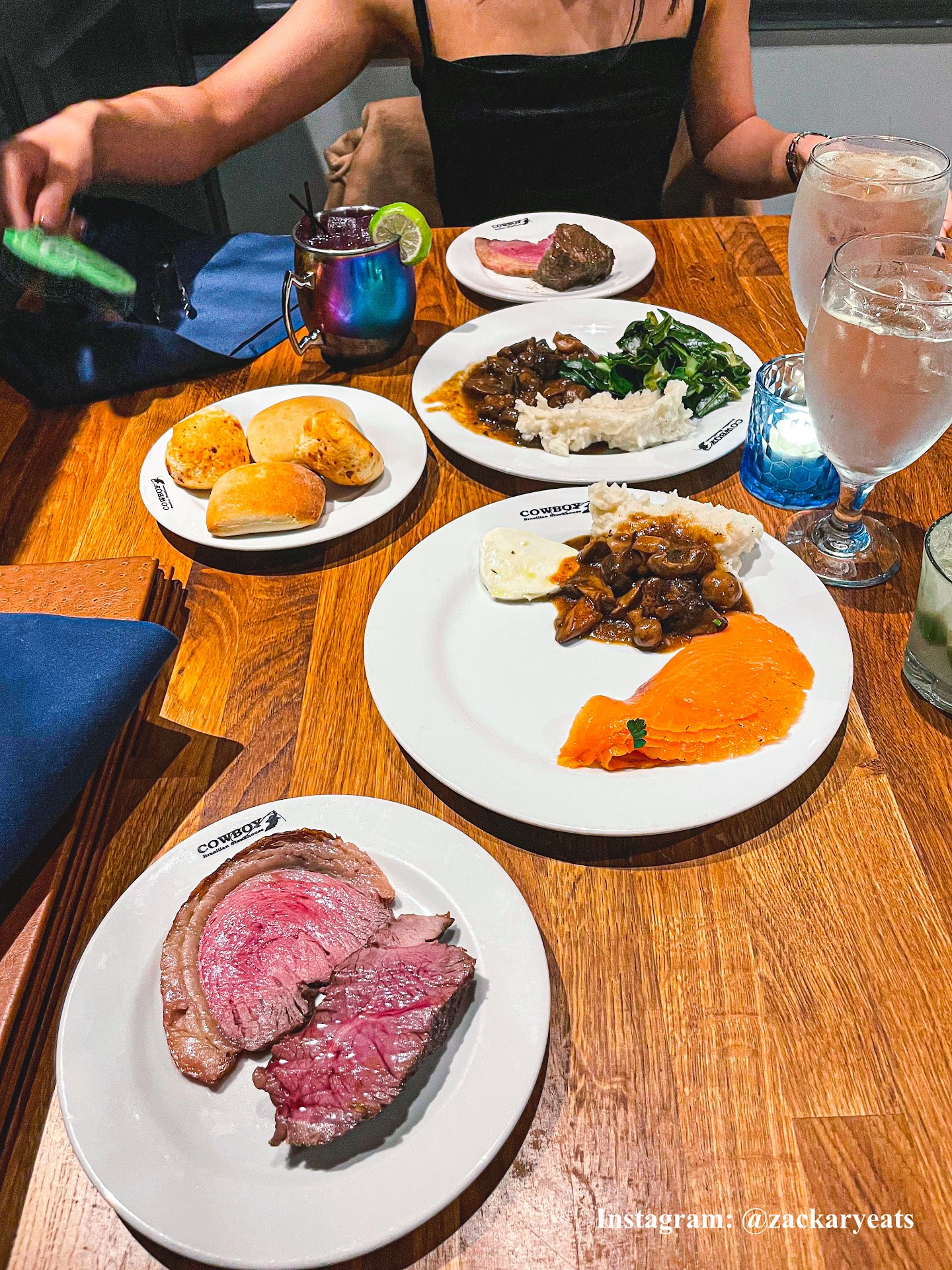 SERVICE: The service here is FANTASTIC. The hostess was friendly and accomodating since it was my first time here, The servers carrying around the cuts of meat are also friendly as well. If you've never been to a Brazilian steakhouse before, the employees at Cowboy will make you feel like you're home and answer all of your questions. I was worried that the servers wouldn't come around to the table that often, but they showed up every 2 minutes or so.