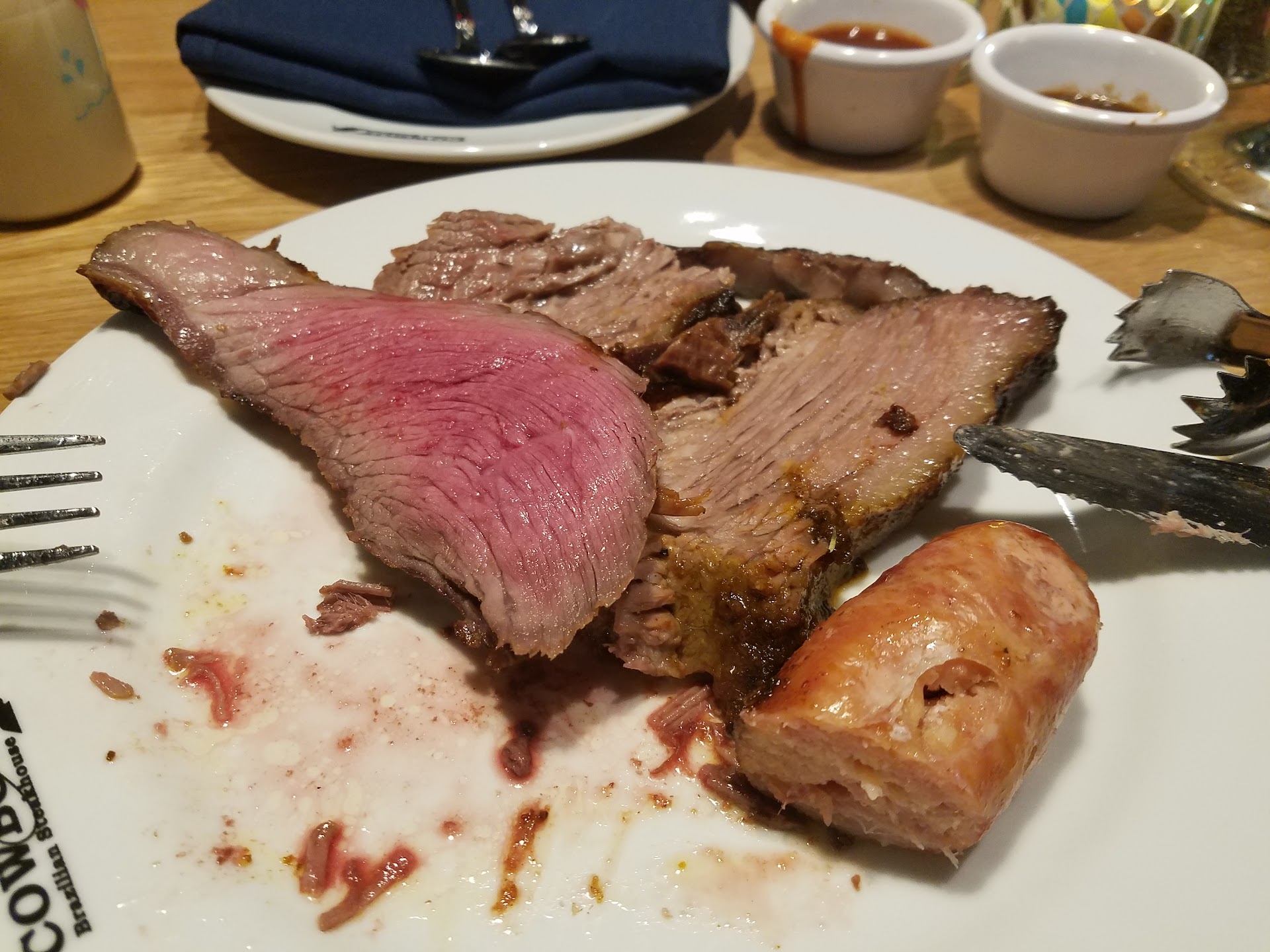 The meat itself was very fatty and not very flavorful. The best meat I had was the Parmesan pork. The picanha was fatty and tasted like raw meat. There's no way that the bacon-wrapped "filet" was actually filet mignon. It was beef, but rough, more like stew meat. The grilled cheese was interesting and pretty good. Never saw any lamb at all. The grilled pineapple was by far the standout of the meal.