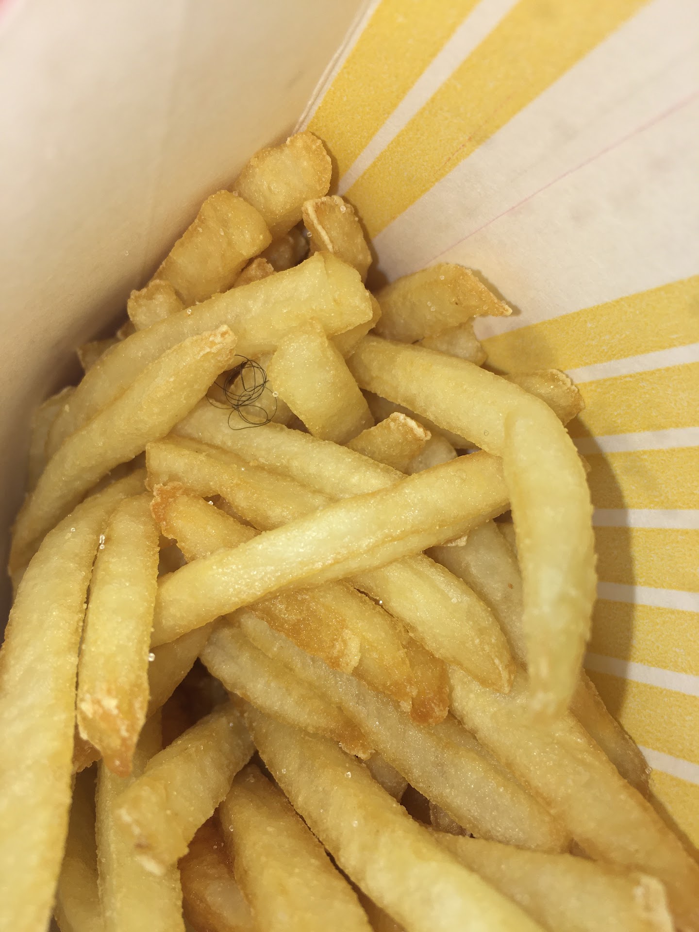 Now the car ahead by this time has my sons's happy meal and my large fry. I see them inform him that something was wrong he then passed the food back I guess he gets upset and drives off. I tell the cashier that I don't want the food that he had in his car. You never know kid might have sneezed everywhere, he might have started eating the fries, I don't know. She says no they will throw that food away.
