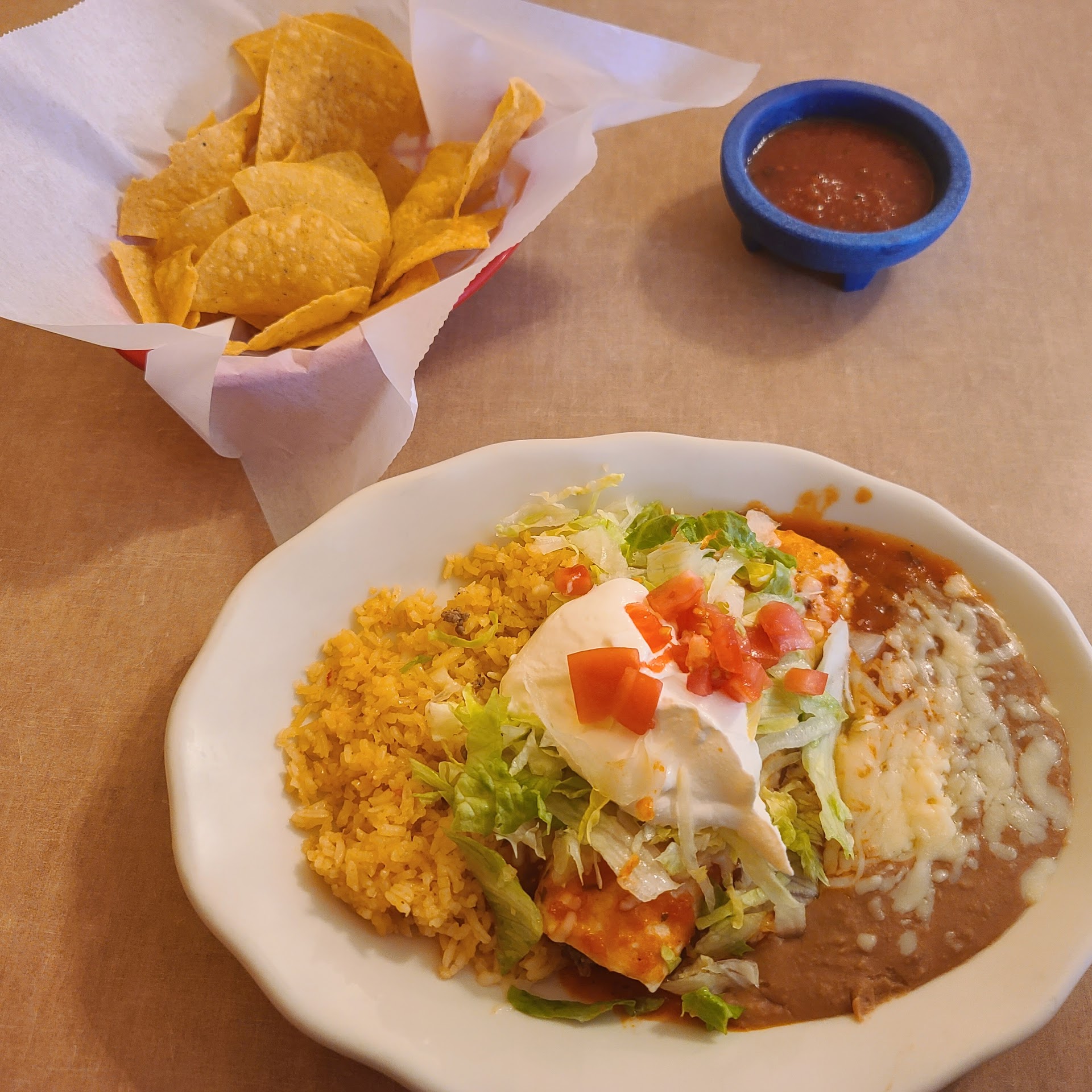 Food: I ordered the #4 lunch special which was a burrito (deluxe I think) with rice and beans. Rice: 5/10 moist, but really no flavor Beans: 5/10 great consistency but again no real flavor Burrito: Same story. Executed well but hardly any flavor. Maybe a hint of seasoning in the ground beef. Chips: 10/10. Had a slightly thicker crunch than normal from the free chip fare at Mexican restaurants Salsa: 100/10. Loved this salsa. Full of flavor and def one of my top favorites I've had at a Mexican restaurant. It was so good I asked for a salsa refill not realizing I didn't have many chips left so I used my last big chip as a scoop that I ate the rest of the salsa with before I ate the chip.