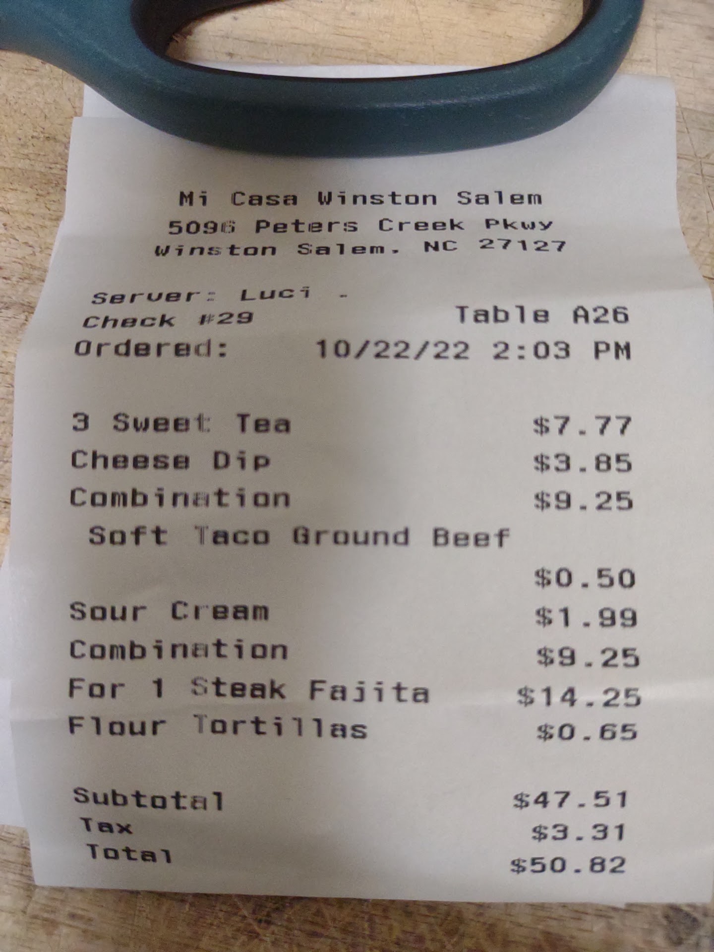Read moreFood is average. I really want to talk about their pricing and policies. I ordered off the a la carte menu and specifically told that to the waitress. One soft taco ($2.50), one hard taco ($3.00), rice ($2.50) and a small amount of sour cream. Adding sour cream and tomato to the tacos is $.50 each, so I was expecting maybe $1. She turned my order into a 'combination' and charged me an extra $1.25 for the privilege, another $.50, apparently for the fun of it, and less than 2 tablespoons of sour cream were $1.99. So my $9 meal was billed as $11.74. I wanted to complain, but was with a relative who knows the owner and asked me not to because he is ill. Seriously, a combination generally gives you something extra or a small amount of money off. All I got was charged more. I will...