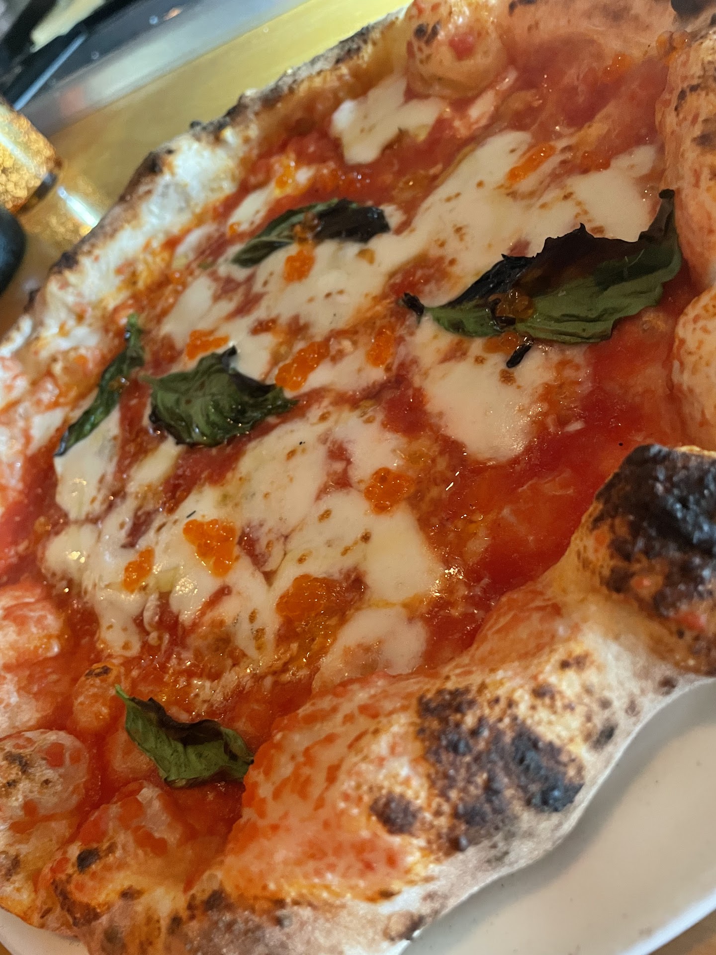 The journey doesn’t begin with pizza. We start with wood fired veggies, onions, golden beets, greens(chard?), peppers and the most beautiful combination of cheese and farro. Now, I went in with low expectation because I’ve had more bad farro than good. Chefs like to try too hard to make it Al dente and I don’t want crunchy slightly undercooked farro it’s just not my vibe. These grains were expertly cooked not mushy holding their shape and texture but threading that line between over and under packed with brothy flavor. My expectations for everything else went up exponentially.