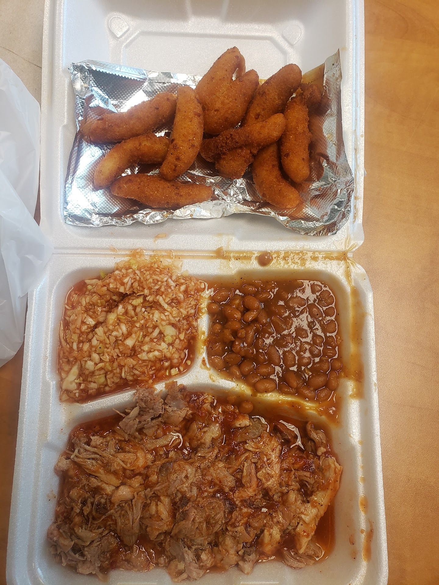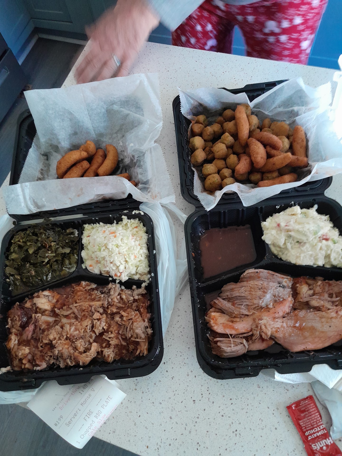 Ā Ā Ā Read moreWell yes me and a associate stop to get some food to go, like BBQ. And some fish first of all their BBQ is good but lexington BBQ is better we notice, and the fish was okay the side order was according to the people who took my order indicated that they has collard greens, me being a green love realized when I got home that they were not collards green but in fact can turnip greens, totally different, but I prayed over my food for protection and simply ate my food. People may criticize me or hate me for this Statement but this is only my opinion, and this isn't racism, but I've notice a big difference in the quality and taste and cooking favorable foods that is primarily considered southern, or what considered soul food or just good old fashioned southern foods that are cooked by those whom aren't from this geographic areas called the sunbelt, it takes special individuals to master good old southern foods so I struggle with the details of those that who although are cooks but lack that skill that was past down from those who experience slavery in the America's for they are considered to me and others the best cooks of the traditional southern foods, so I said all of that to say its not the actual food but the people who prepare the foods that for me determines how delicious the food is, preparing foods requires praying over food and sticking to what have made southern cooking for me the best in the world so Mr. BBQ was okay if you like or love unseasonably foods, that just my observations please don't be offended just strive to meet that great southern standard of preparing foods down here in what's call the sunbelt or North Kat kalacky....