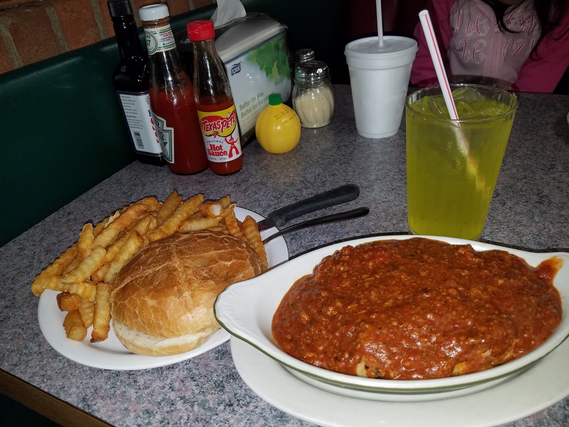 Read moreNot sure why people like this place. My wife likes the bologna sandwich. I've tried many menu items, still nothing that's great, not even very good. Pasta is wet, with water at the bottom of the plate, hamburgers are from Frozen parties, French fries tasteless, not very crispy and yet brownish. Steak sandwich meat is some sort of pressed meat, like Buddig or possibly mighty dog dinner... Last one I had was warty looking and somewhat fishy smelling. I once asked for extra mayonnaise and it had either"gone off" or was actually some sort of sandwich dressing, not Mayo. The one redeeming quality is they DO have home made baklava, however instead of using real honey, it's some sort of almost clear sweet liquid like a heavy sugar syrup, maybe with a bit of honey flavoring or even real honey added for a bit of flavor. Get it to go, remove the baklava from the surger syrup and put a little real honey on it, and...