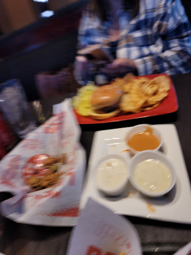 Read moreThis was my second time eating at a Red Robin but my first time at this location. The first red flag was that upon our arrival there was no hostess present. Her absence was long enough that we started to wonder if we were supposed to seat ourselves. A few minutes passed and finally she arrived. After being seated our server came by and asked for our drink orders. She placed plasticware on the table explaining that they were out of silverware, second red flag. As a restaurant that isn’t even open for breakfast there is no excuse for not having silverware. We decided to order. After waiting approximately 20 minutes for our food our server returned and asked us to repeat what we had ordered. Red flag number three. Another 10-15 minutes pass and my father and I were served our burgers. My mother’s food was nowhere in sight. The server asked if we needed anything else and my mom replied “my meal please.” The server left to “check” on my mothers meal. Several minutes later she returned and said they were working on her sandwich now. Many moments passed and still no food. So my mother asked another server where her food was and told her what it was that she ordered (a turkey blt or something) that server told us that the turkey was frozen but that they were working on it. Biggest red flag of all. Instead of offering my mom something to eat while she waited or if she’d like to order something else my mother was left sitting watching my father and I finish up our meal. Finally her sandwich arrived.. with the wrong side which the server didn’t even notice so my mom informed her of the mistake which took another 5/7 minutes to fix. I asked for a refill on fries that was never delivered. When the bill came we couldn’t believe our eyes that NOTHING was comped on the bill NOTHING. When my mom started to ask the server why nothing was taken off for our inconvenience the server walked away as if she had not heard my mom speaking to her at all. This will be our last visit at any Red Robin location. Food is not worth the price and definitely not worth the horrible server you must encounter along the way. If you’re looking for a good burger I suggest bad...