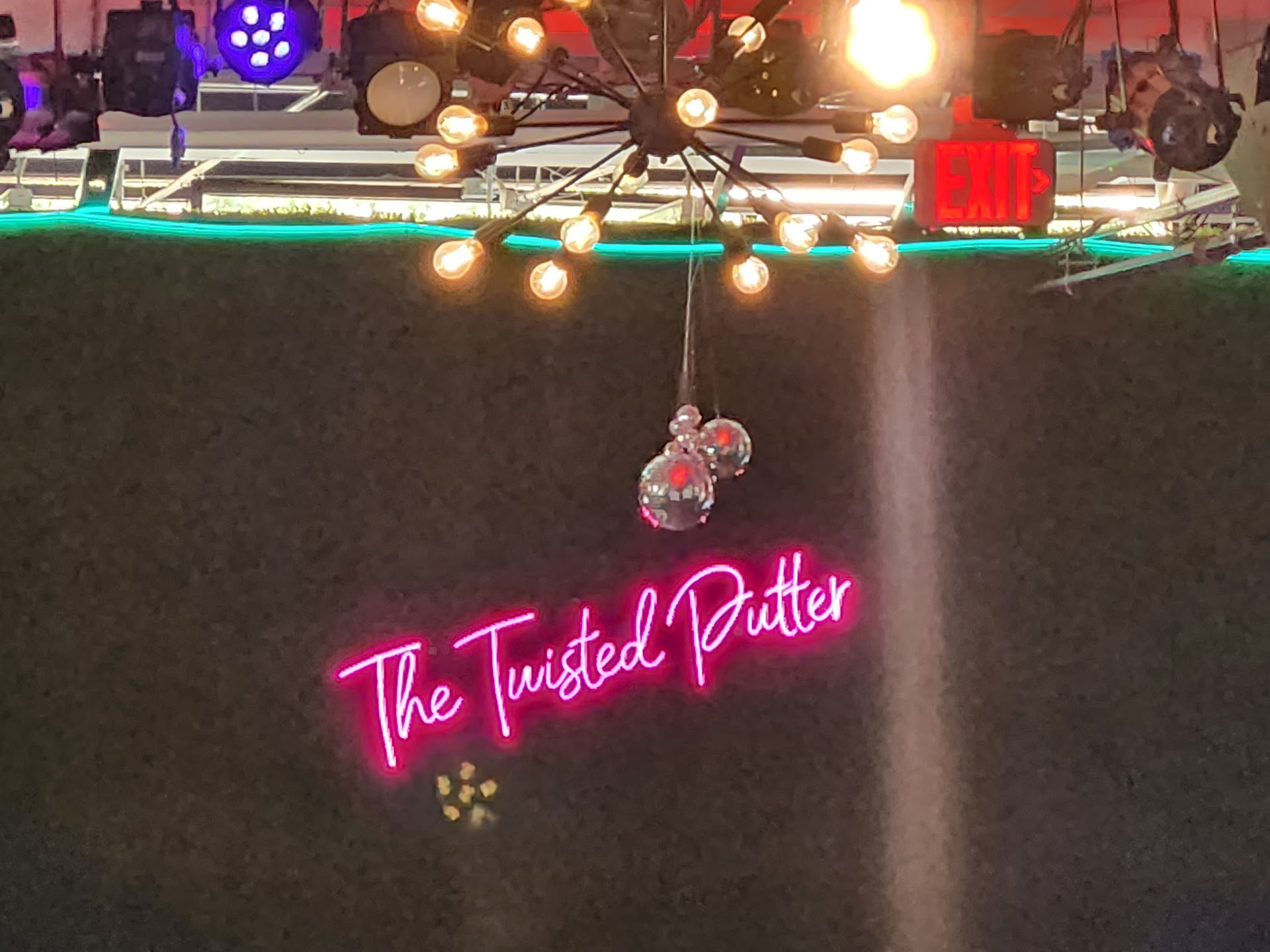 The second floor (once you get there) feels like an upscale game room. You can take the elevator or the unmarked stairs. Golf simulators ring the sides and mini bowling anchors the east end of the building. On our first visit we were not able to play golf or bowl as they were all booked up (completely our bad for not booking ahead). We did make a reservation for the second visit for golf. Bring your own clubs! All of the drivers/wood were broken and the club sets are a mixed bag (pun intended). The simulators are state of the art but definitely need service and calibration. We had a mid-single digit handicap player with us and his best drive was only 159 yards. But his approach wedge produced 120 yards with half power.