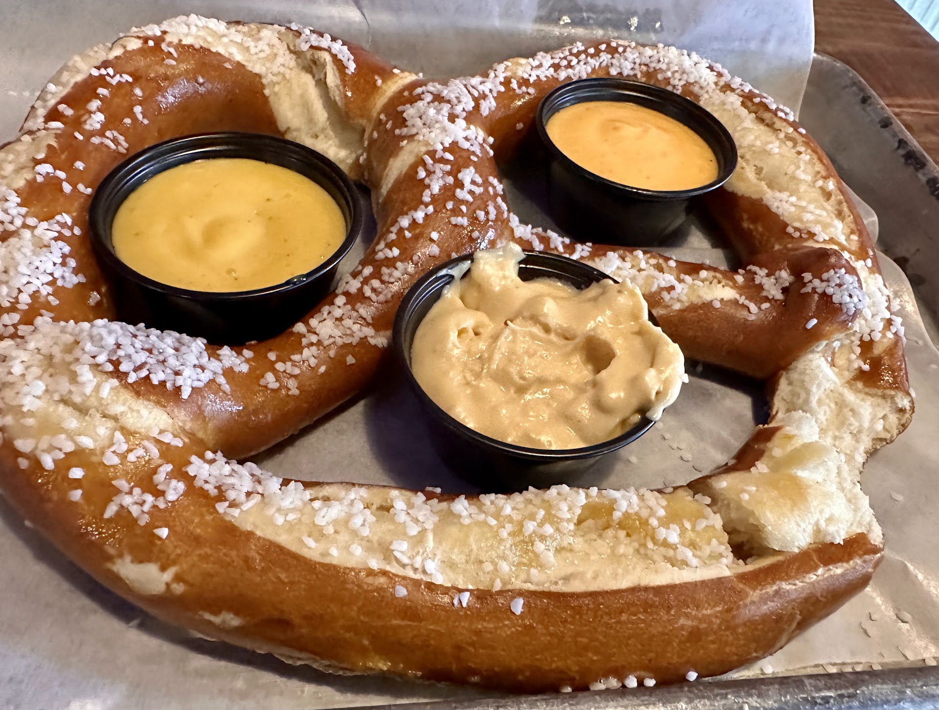 I cannot for the life of me figure out why people like this place. We came for father’s day with my disabled FIL and 2 young kids. Small Batch didn’t have any chairs (only benches-difficult for my fil) so they sent us over to Burger Batch. We couldn’t figure out who our server was. As soon as one left, another would come over to ask for our order (this happened for our drink order and our dinner order-super strange-“we just placed our order with your colleague”). My food came out 5 minutes after everyone else’s with no acknowledgment. I asked if the order was put in, the server said “yes.” And walked away. The food: we started with a giant pretzel that was good but I would pass on next time, my kids ate all of the Mac n cheese, but they would not touch the cheeseburger, my husband’s super food salad was anything but super. It was a joke, quite frankly (he is vegetarian so the options were limited), my fish and chips were overdone and dry. By far the worse fish and chips I have ever tasted. The batter is not light and fluffy-but is more of a chicken fingers batter. My sangria tasted like it was boxed red wine with some ice thrown in-there was no fruity taste. The Rueben was delicious (but my fil will eat anything, including my cooking, so I really don’t know....) We ordered 1 milkshake, and it came with 3 spoons and 3 straws and 2 napkins. There were 5 of us. As soon as we were done, the kids started going bonkers and I couldn’t get out of there fast enough. 3 employees were chatting at a table folding napkins (one of our original servers being one of them). There were 4 tables, all near completion, and nobody giving checks. Just 3 employees sitting down chatting. I finally glimpsed our other server and waited to catch his eyes. After several minutes I succumbed to asking from across the restaurant. Super awkward, especially because there was no music softening the blow....but we would have last 27 more seconds with my sugar loaded kids. I will never go to this place again.