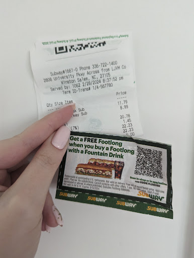 My brother and I went to Subway in Mocksville, North Carolina, the 28th of October, 2023. We had 2 coupons each for free 6" subs. I let them know that before our subs were being made. When it came time to pay, I handed in my 4 coupons. The young lady didn't know how to ring them up so, she got the day manager and the manager says to me, " you can only use 1 coupon each. " I said " it doesn't say that. " she said, " it says it on the back. " I asked her, " where does it say that, I read the back before I came in." So, she goes to point it out to me and, it doesn't say that. It says " 1 coupon per sandwich, extras are not included " The look she gave me. Then she says, " I'll do it for you this time, you know we have to make money also " I said, " who doesn't" she rang me up as I was turning away, I saw her threw the coupons in the garbage. Now, as for the food, at first I asked for a roast beef on cheesy bread, until I saw the 3 pieces of curled up brown roast beef and told the girl, " wait, forget it, that meat looked horrible, I wouldn't eat that. So, I got a BLT instead. Now it's time for the veggies, the tomatoes looked like they were from the day before, juiceless and dull, ( she didn't give me those ) the lettuce was a mix of green and brown. ( horrible ) I took the lettuce off when I got home. That manager needs to lose her attitude and speak to people like she would like to be spoken to. And...