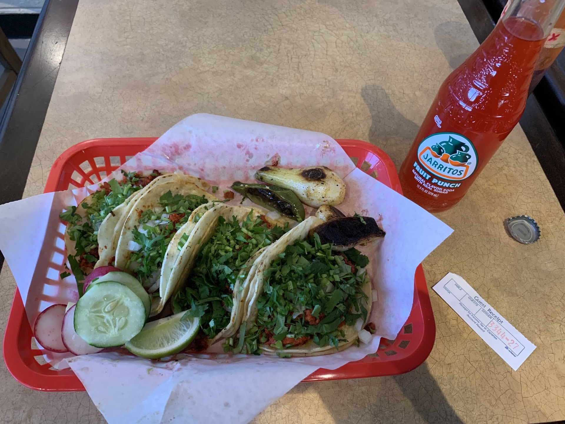 Wanted to try this little Taqueria for a while and finally popped in for a bite. Small mom and pop feel with quick service. Got the 4 taco special that you can mix and match which was great to try a lot. Got the al pastor, chorizo, spicy pork skin, and the barbacoa. All delicious with a grilled flour tortilla coupled with a smoky hot pepper that carried some heat! Good quick meal that delivered.