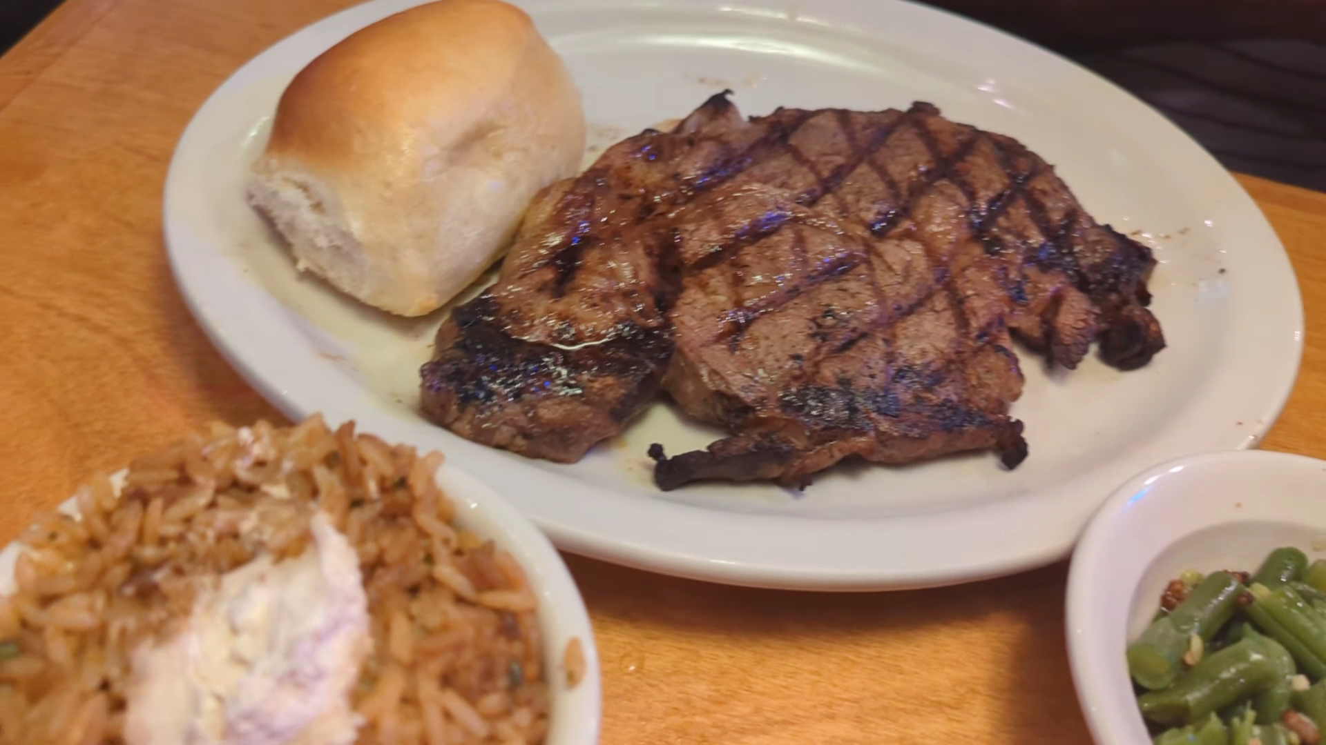 Once seated our server was quick to arrive, take our orders and bring us drinks and rolls. (She was the only positive experience during our visit today.) We had 4 people in our party. One ordered ribs. Three of us ordered steaks- 8 oz filets, one cooked medium well & 2 cooked medium. When our salads arrived I had ordered a Cesar salad and there was no dressing on my salad so I had to search for someone to bring me salad dressing.