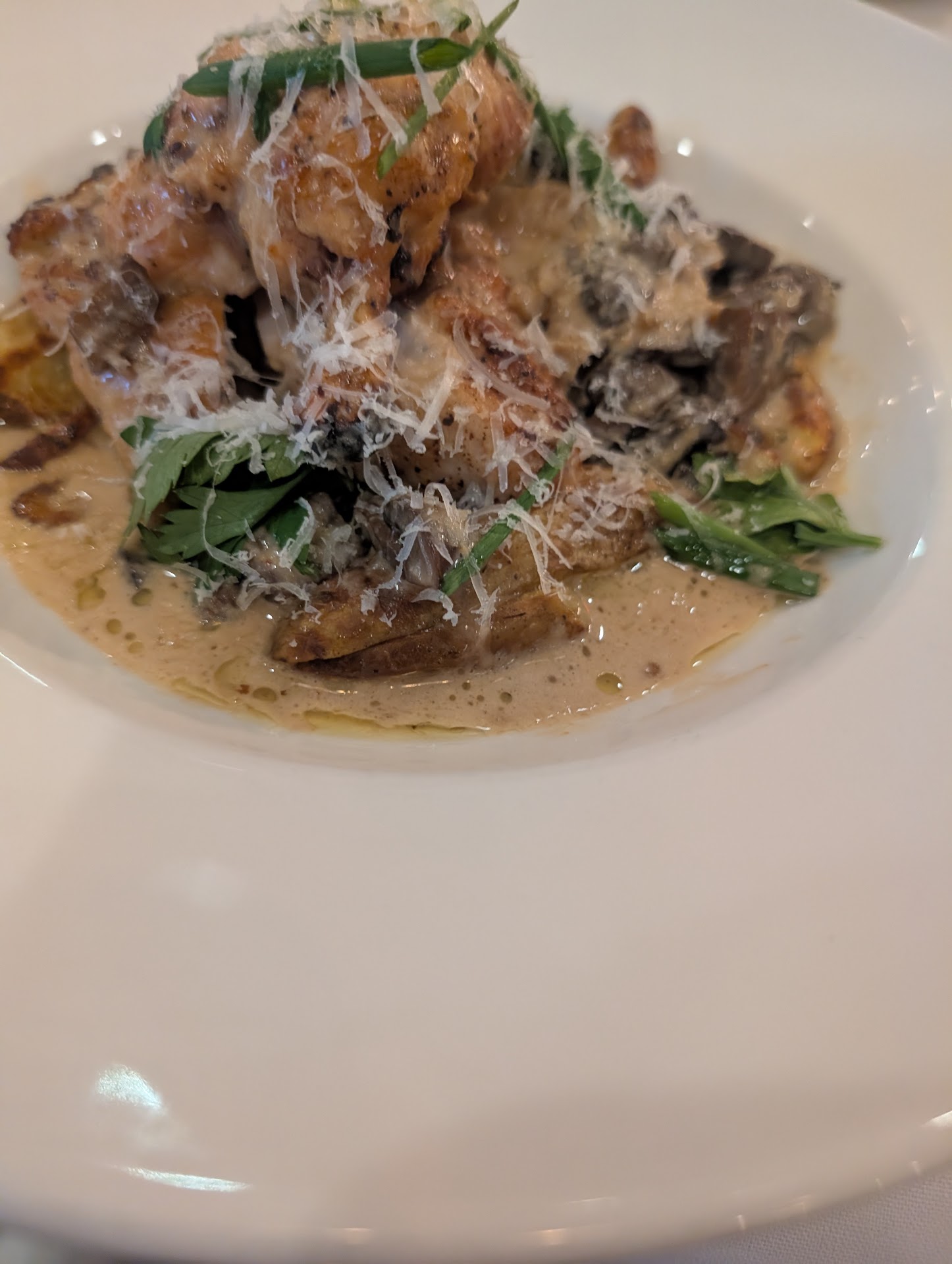 For entrées, my clients shared the 16oz ribeye, which was perfectly cooked, while I opted for the chicken marsala. Both dishes were beautifully prepared and full of rich, balanced flavors. Two of us eat gluten-free, and the restaurant easily accommodated our dietary needs without compromising on taste.