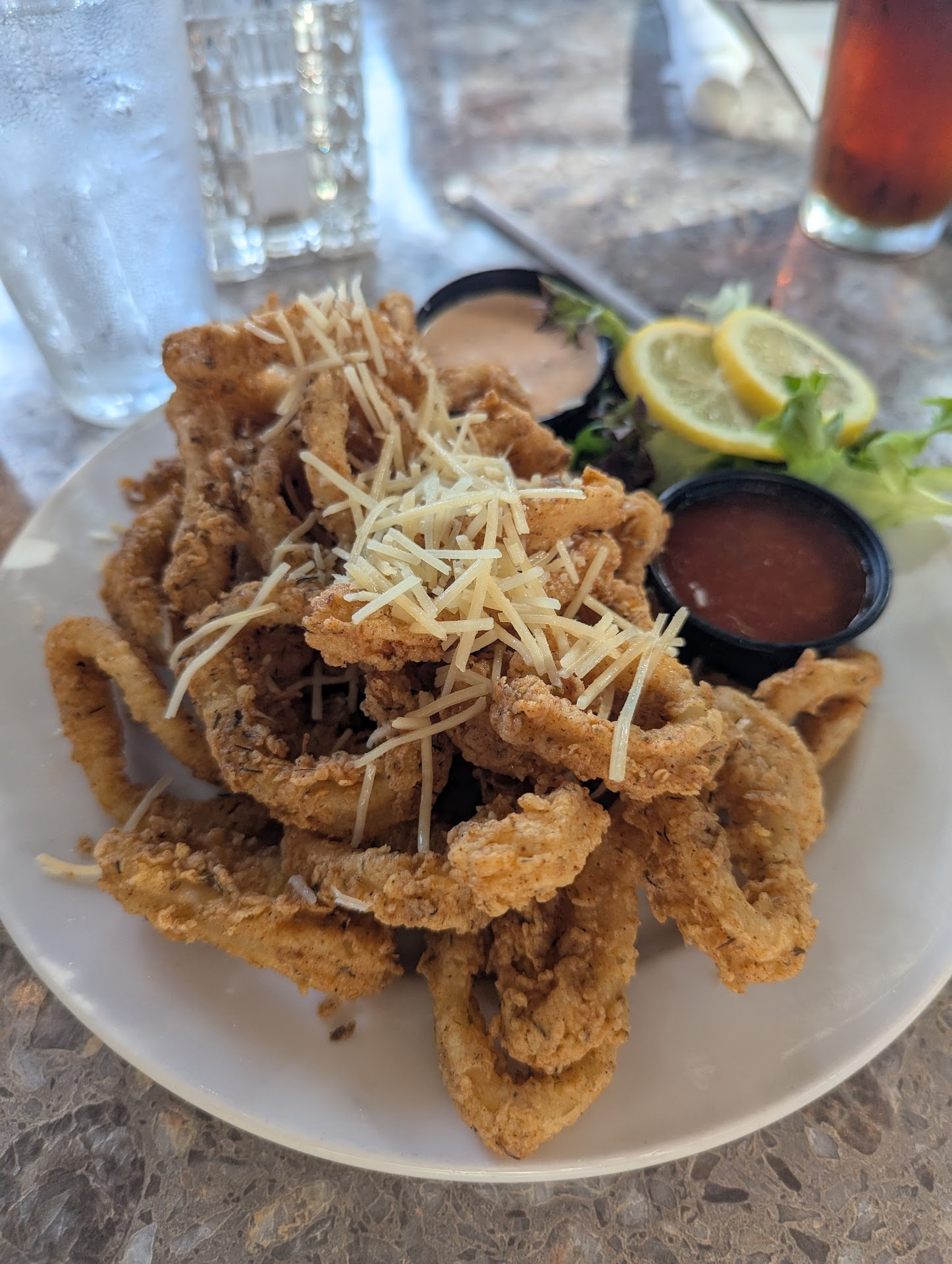 For me, the "Blackened Chicken Alfredo Pasta", but instead of the chicken, I substituted it with scallops. Instead of costing $18, it came out to $25 instead. I had no problem with that! It was so yummy! I couldn't finish the whole thing so I prioritized eating all my scallops while it was fresh and packed the rest to eat later. My toddler ended up getting what was left later when the fresh fruits we'd ordered for her finally ran its course and she was willing to eat a more substantial meal later that night. Nothing was wasted!