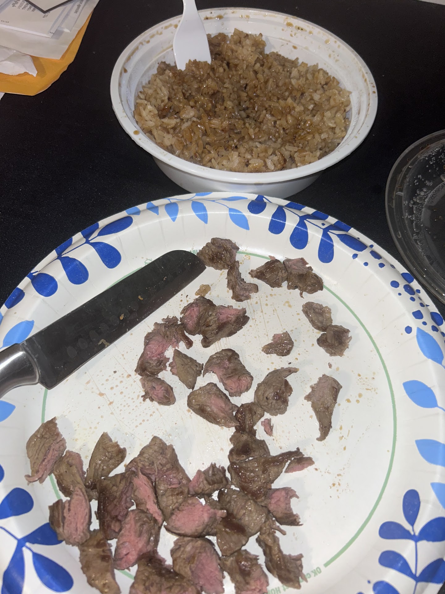 Came across this hibachi place and wanted to give it a try. I was a bit hesitant to go being that they were about to close in about 30 or so minutes but the man said they still were taking orders. He answered our questions about the menu and didnāt rush us to order. Great. I ordered a Steak Bowl. He asked howād I like the steak, I said WELL DONE. My partner even emphasized please can you make sure itās WELL DONE for that bowl. He agreed and repeated. Got home and immediately knew the meat was not well done by looking at it so I placed it on a plate and cut them open to find PINK. At this point, they are closed and we do not live close by. If you are not going to cook meats to desired temperatures why ask us to begin with? Highly disappointed because I thought this place could have had potential. My partner got the House special chicken steak and shrimp and after placing his on a plate we discovered they stuffed veggies under the meat to make it seem like it was filled up. For $17+ thatās quite disappointing but nonetheless he actually said he may try it again, however he did mention a lack of seasoning / flavor on steak and chicken.